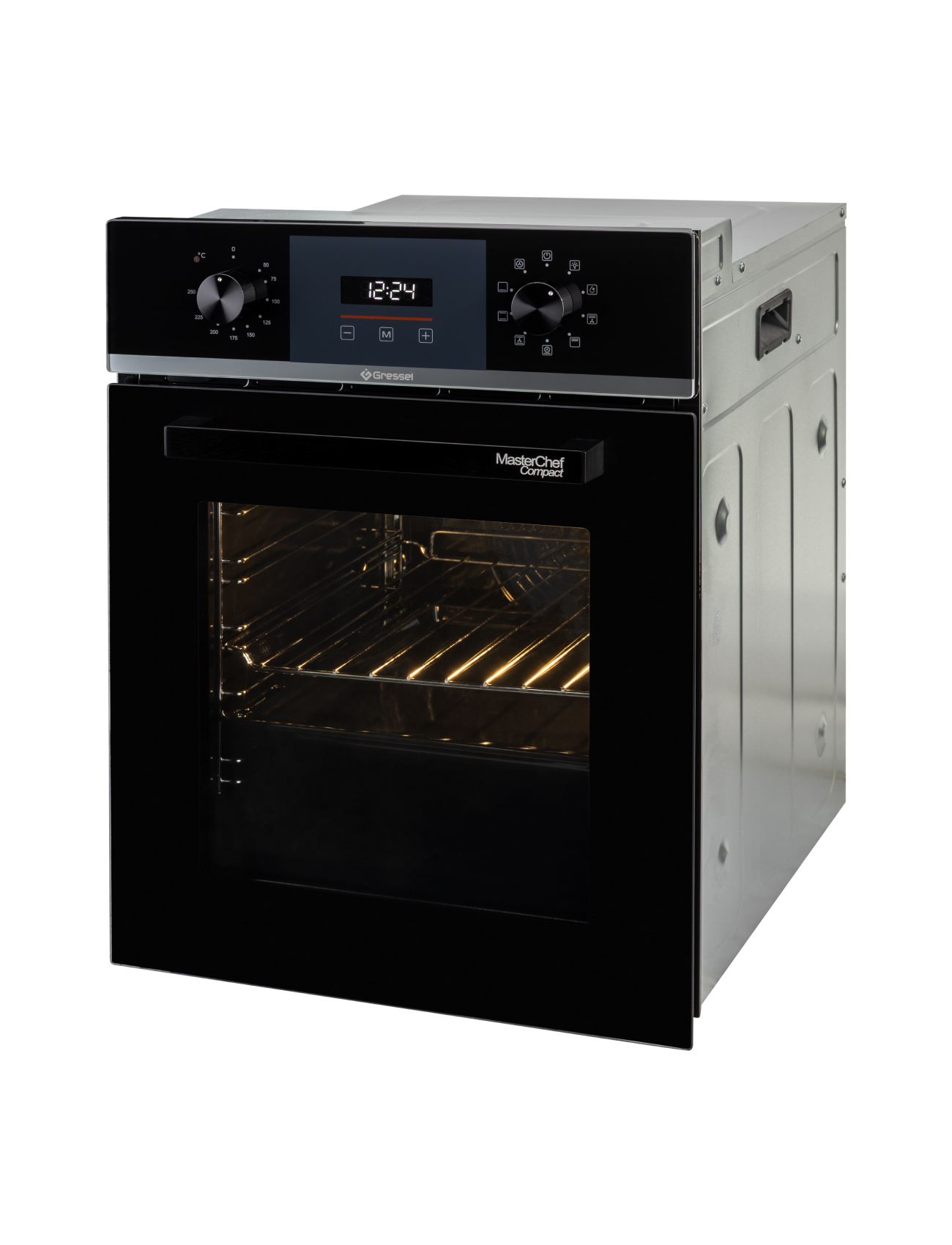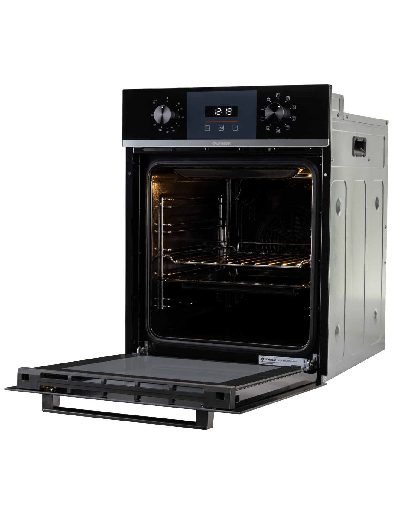 Встраиваемый духовой шкаф Gressel U4ES59100 шириной 45 см — это компактная модель с объёмом 50 л, выполненная в чёрном цвете. Она сочетает современный дизайн и функциональность, подходит для небольших кухонь.