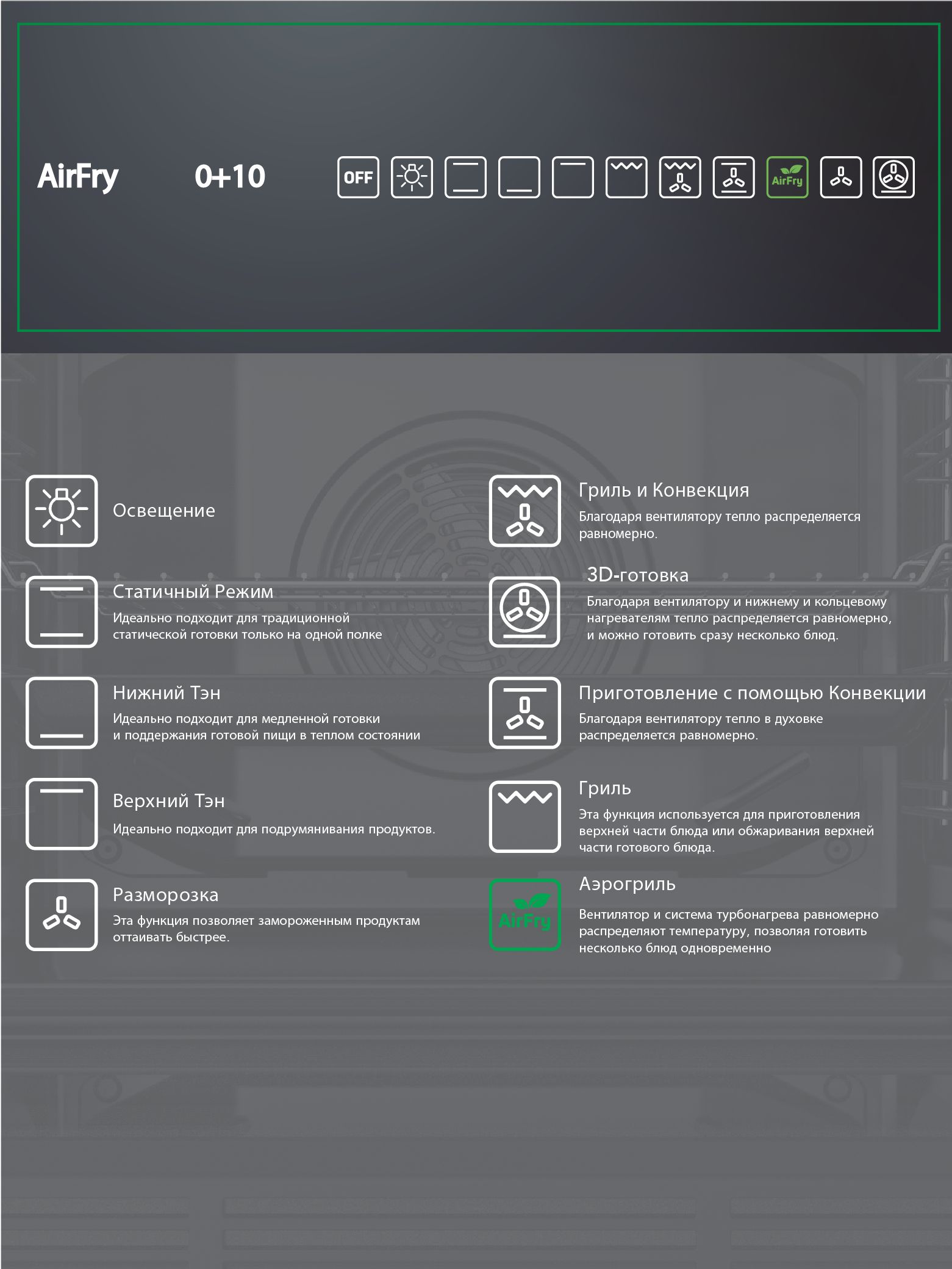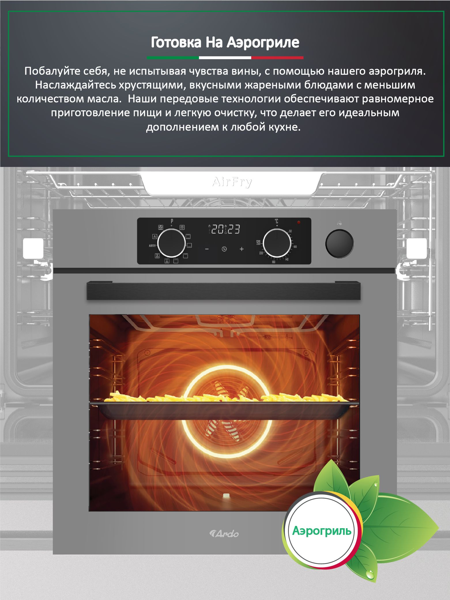 Встраиваемый духовой шкаф Ardo BO810EAS2 - идеальное решение для вашей кухни. С объемом 76 литров и 10 режимами работы, этот духовой шкаф способен удовлетворить все ваши кулинарные потребности. Он оснащен функцией аэрогриля AirFry с технологией Cycle Pro, позволяющей готовить блюда с минимальным количеством масла, обеспечивая при этом хрустящую корочку и насыщенный вкус.