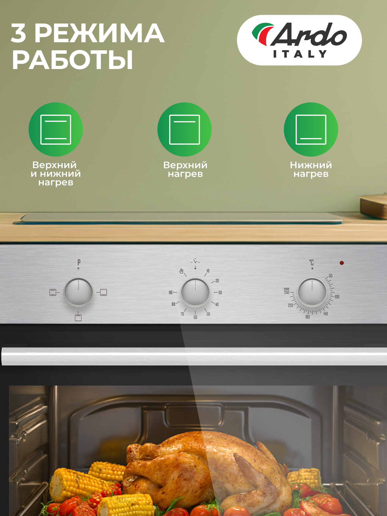 Верхний + нижний нагрев, Верхний нагрев, Нижний нагрев