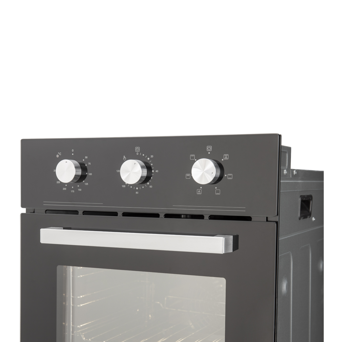 Компактный и вместительный: Духовой шкаф шириной 45 см и объемом 50 литров отлично подходит для небольших кухонь, оставаясь достаточно вместительным для приготовления разнообразных блюд.