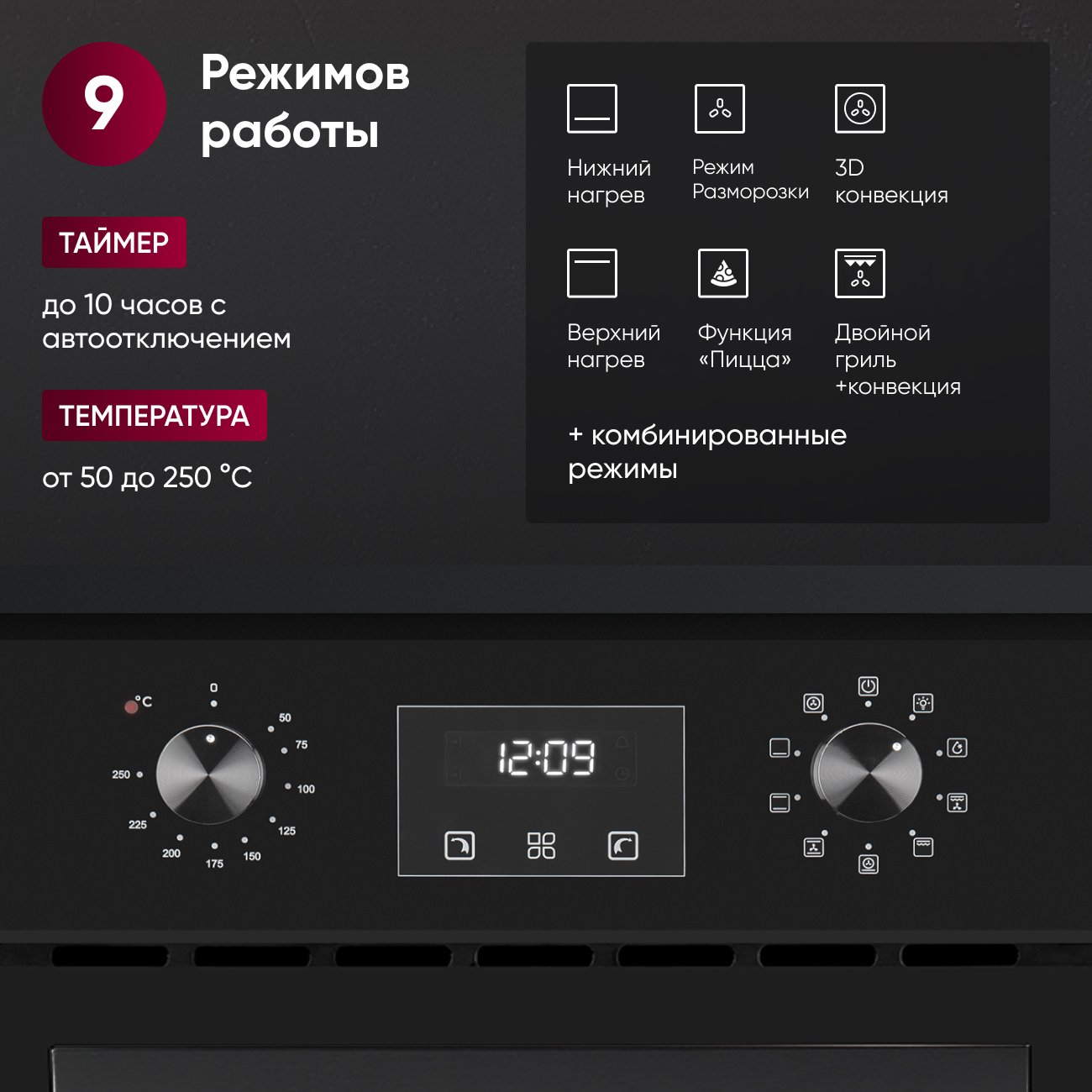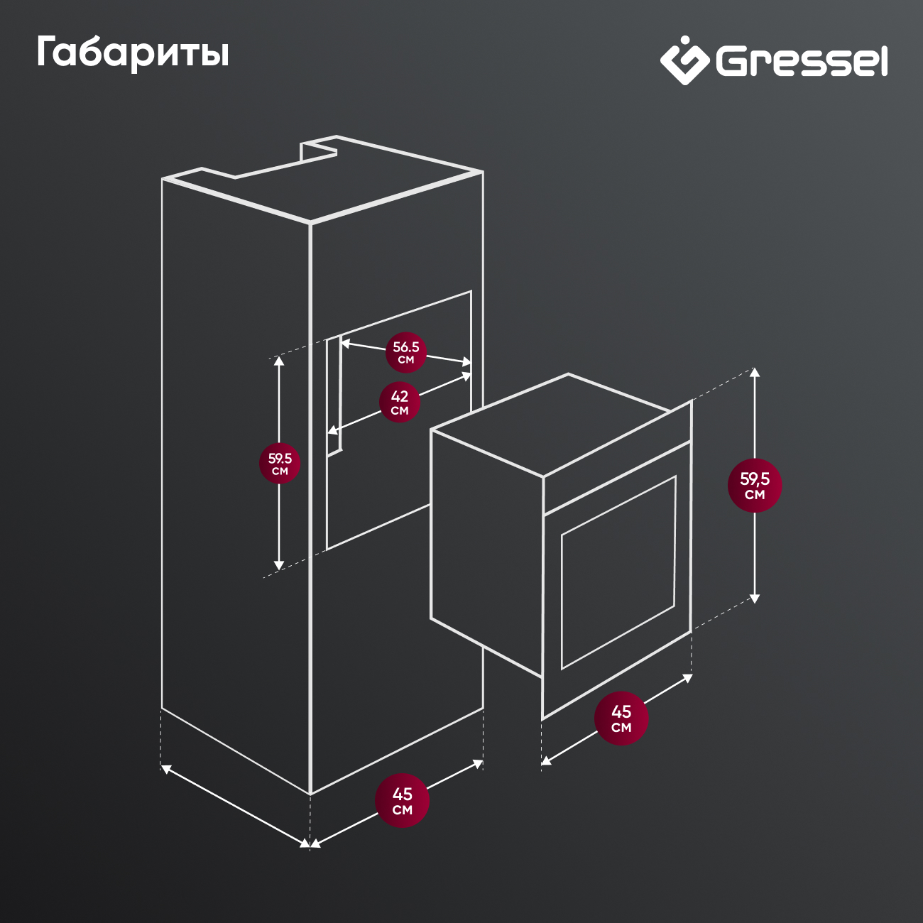 Встраиваемый духовой шкаф GRESSEL RU4ES7759000 45 см, 50 л, 9 режимов