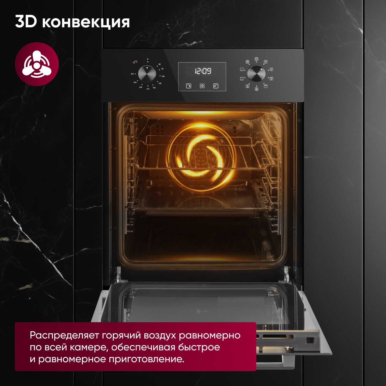 Завершают функционал этого духового шкафа интуитивное механическое управление, внутреннее освещение для удобства использования и доводчик дверцы, который обеспечивает бесшумное закрытие.