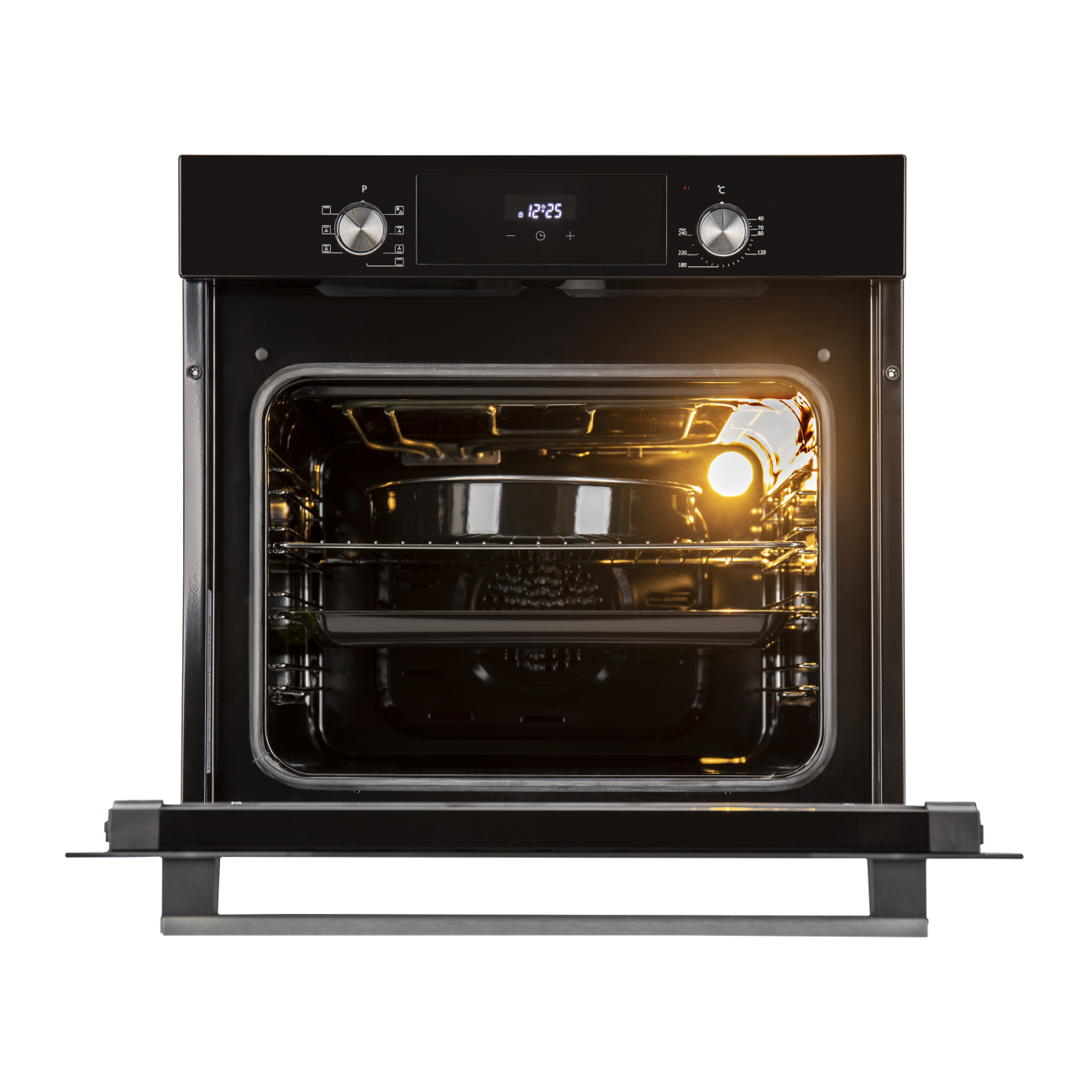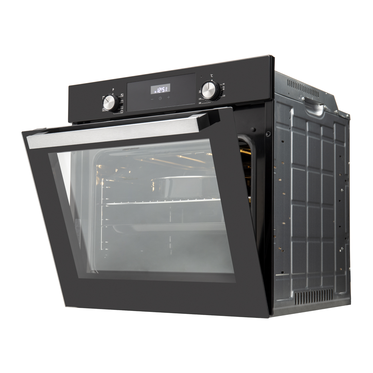 Преимущества встраиваемого дизайна: Стандартные габариты 59.5x59.5x58.7 см и размеры для встраивания 56x59x55 см позволяют легко встроить духовой шкаф в кухонный гарнитур.