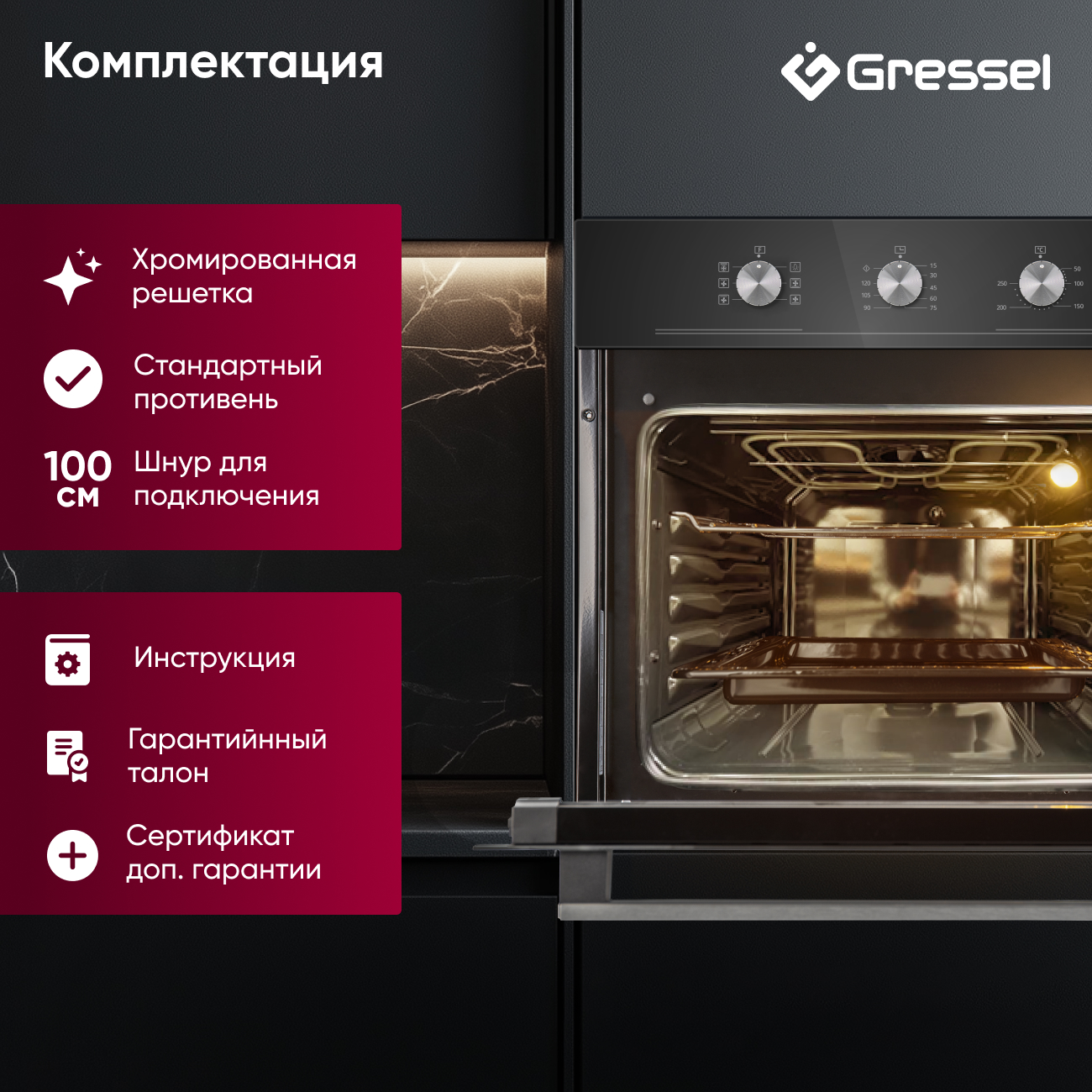 Встраиваемый духовой шкаф Gressel U6ES17000 — это инновационная модель, чьей уникальной конструктивной особенностью является верхнее расположение вентилятора конвекции. Благодаря этому решению, духовка превращается в полноценный аэрогриль, позволяя готовить блюда с аппетитной хрустящей корочкой практически без масла. При объёме 60 литров вы легко сможете запекать несколько блюд одновременно, добиваясь при этом идеального результата за счёт 6 режимов работы.