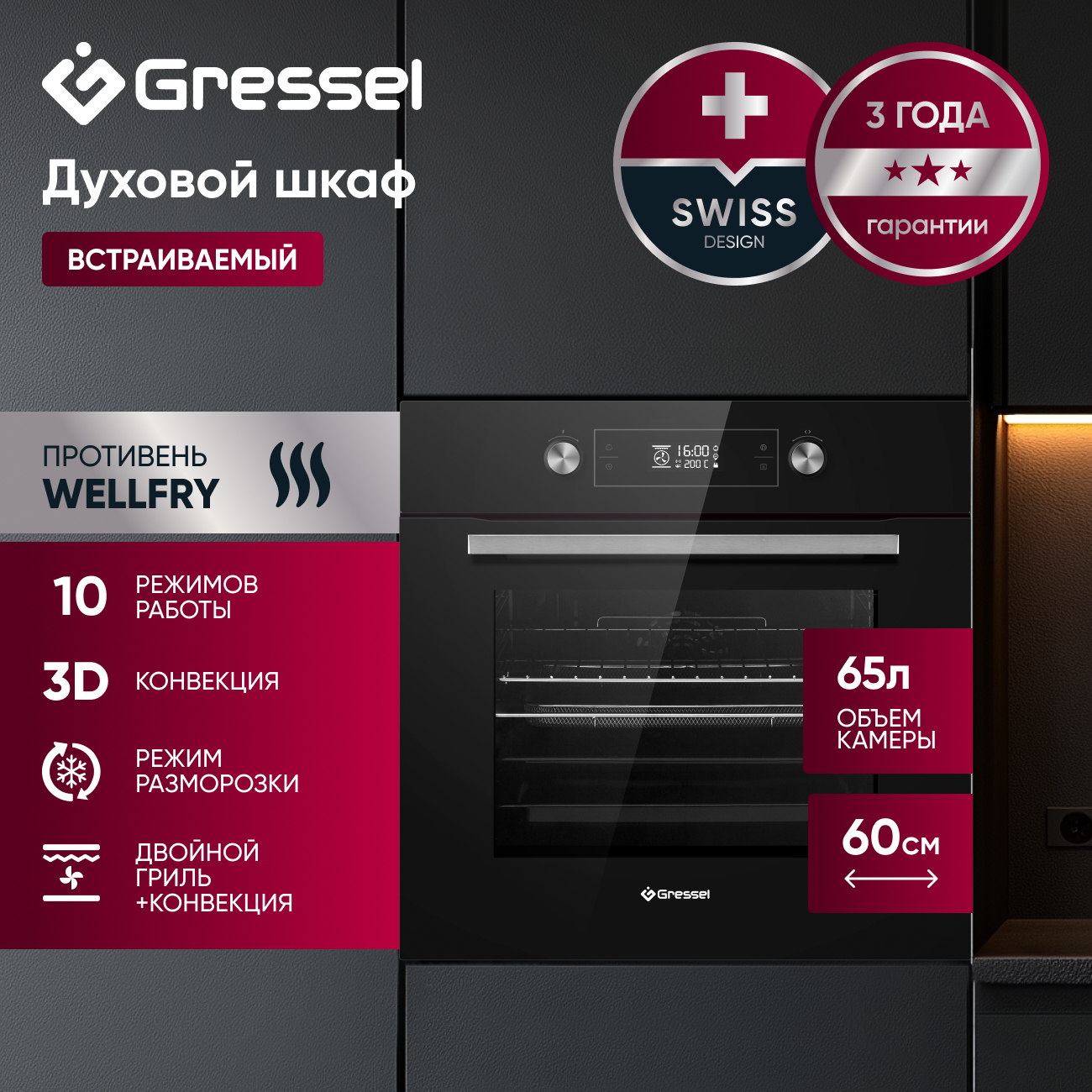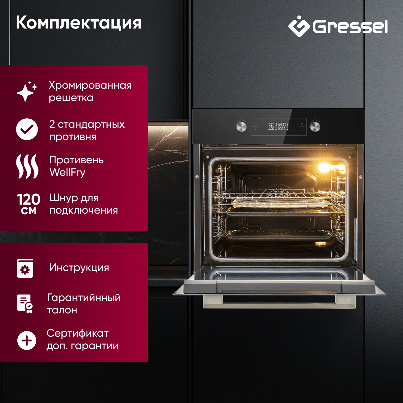Нужно больше функций? Gressel U6ES69000 предлагает 10 режимов, включая двойной гриль, разморозку и конвекцию, что открывает широкие возможности в кулинарии. Объём 65 л позволяет готовить несколько блюд одновременно, а утапливаемые ручки управления придают фасаду аккуратный вид и упрощают очистку.