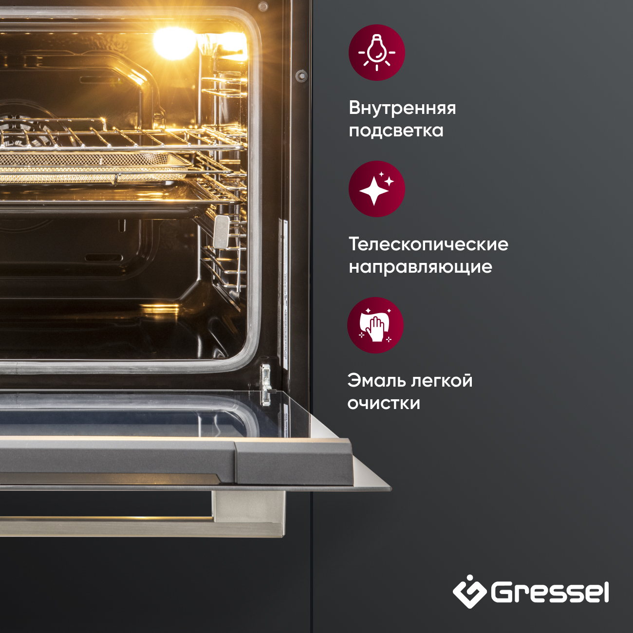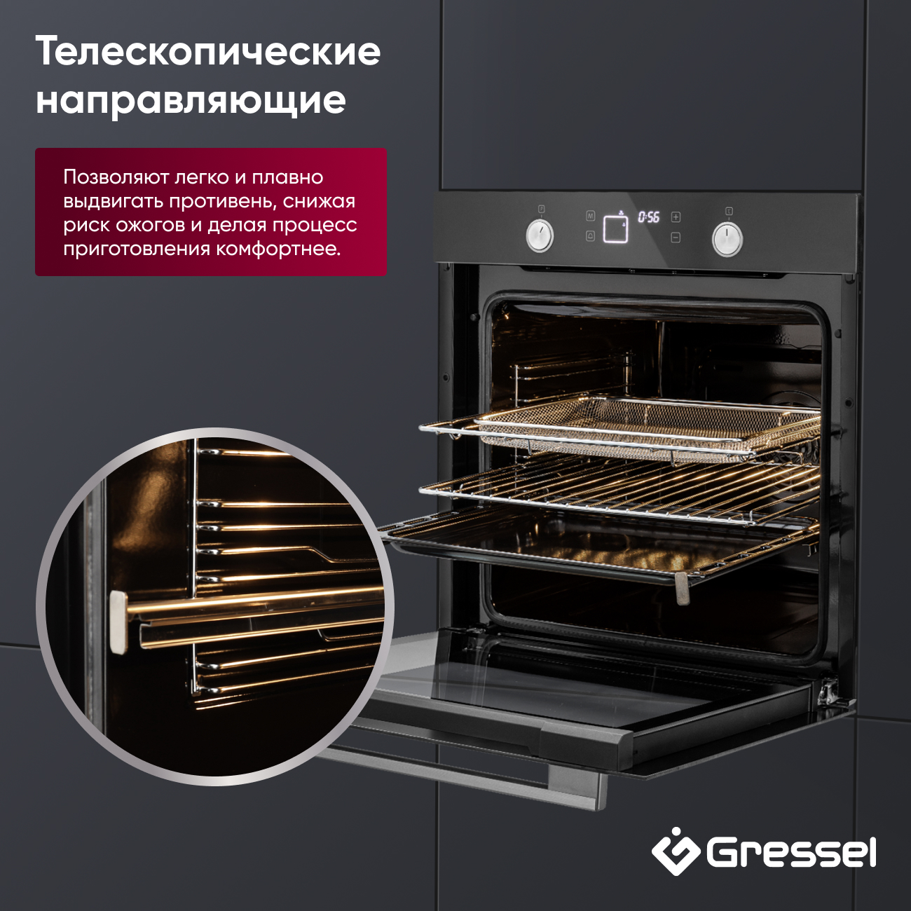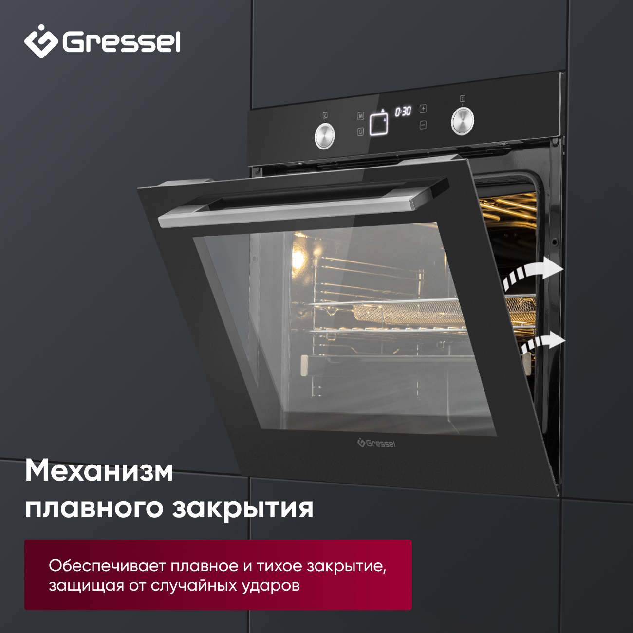 Встраиваемый духовой шкаф Gressel RU6ES7769110, 60см, 75л, 9 режимов работы, 3D конвекция, режим разморозки + противень Wellfry