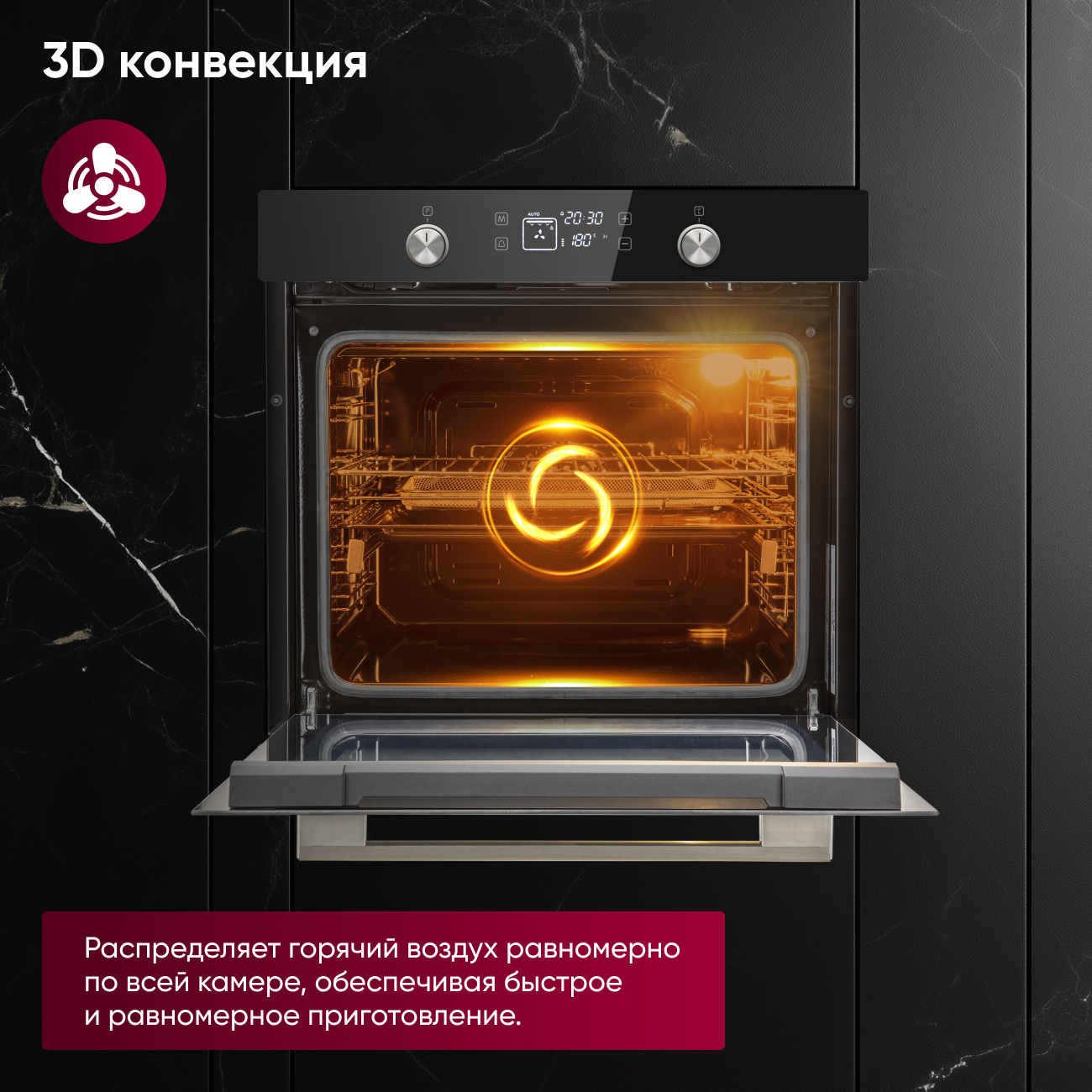 Особенности, такие как двойное стекло и активное охлаждение корпуса, гарантируют безопасность использования и защиту кухонной мебели от перегрева. Технология 3D конвекции обеспечивает равномерное распределение тепла, позволяя готовить на нескольких уровнях одновременно без смешивания запахов.