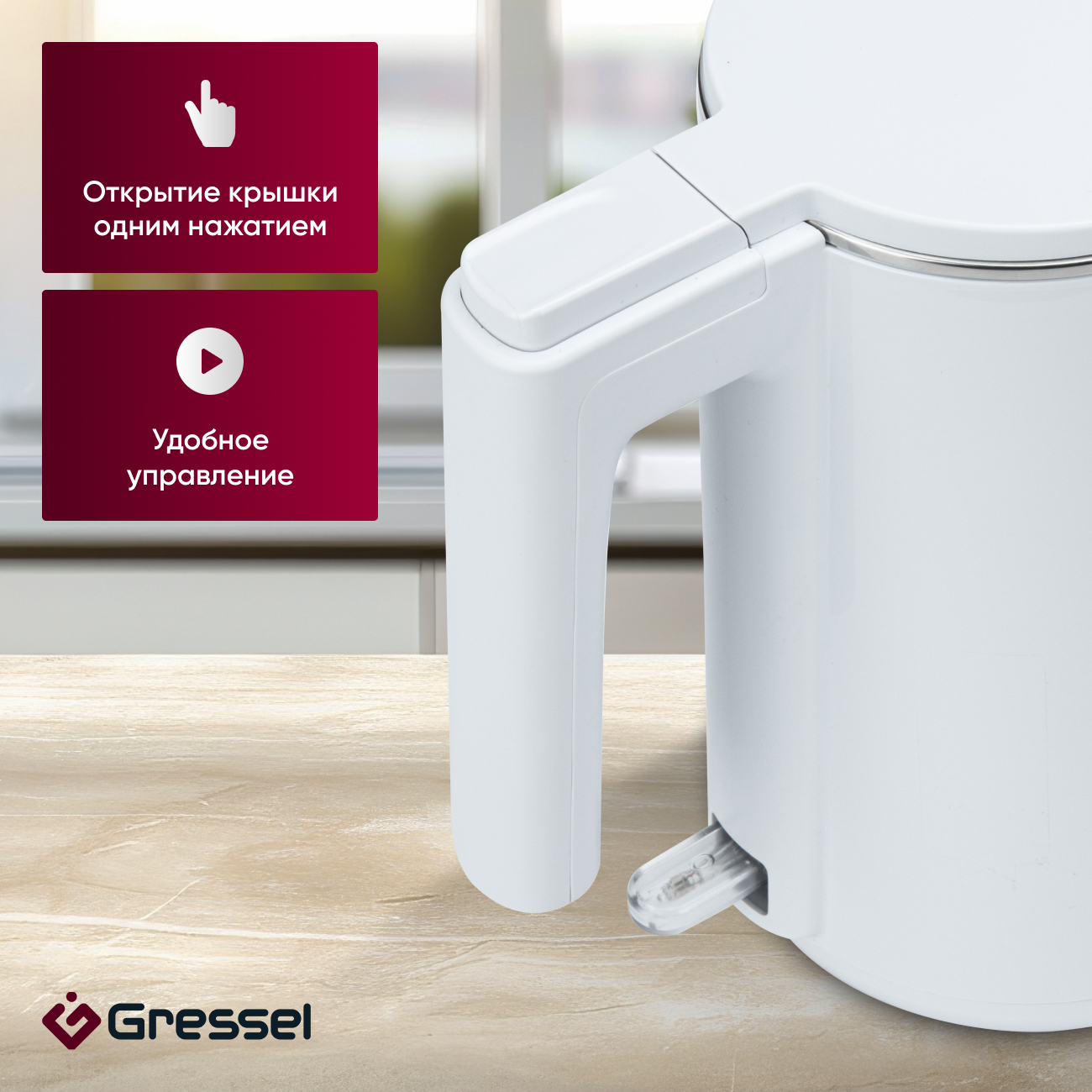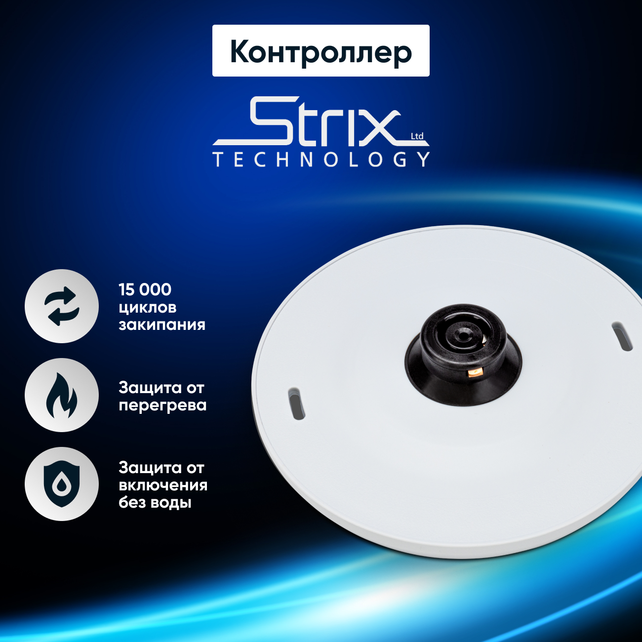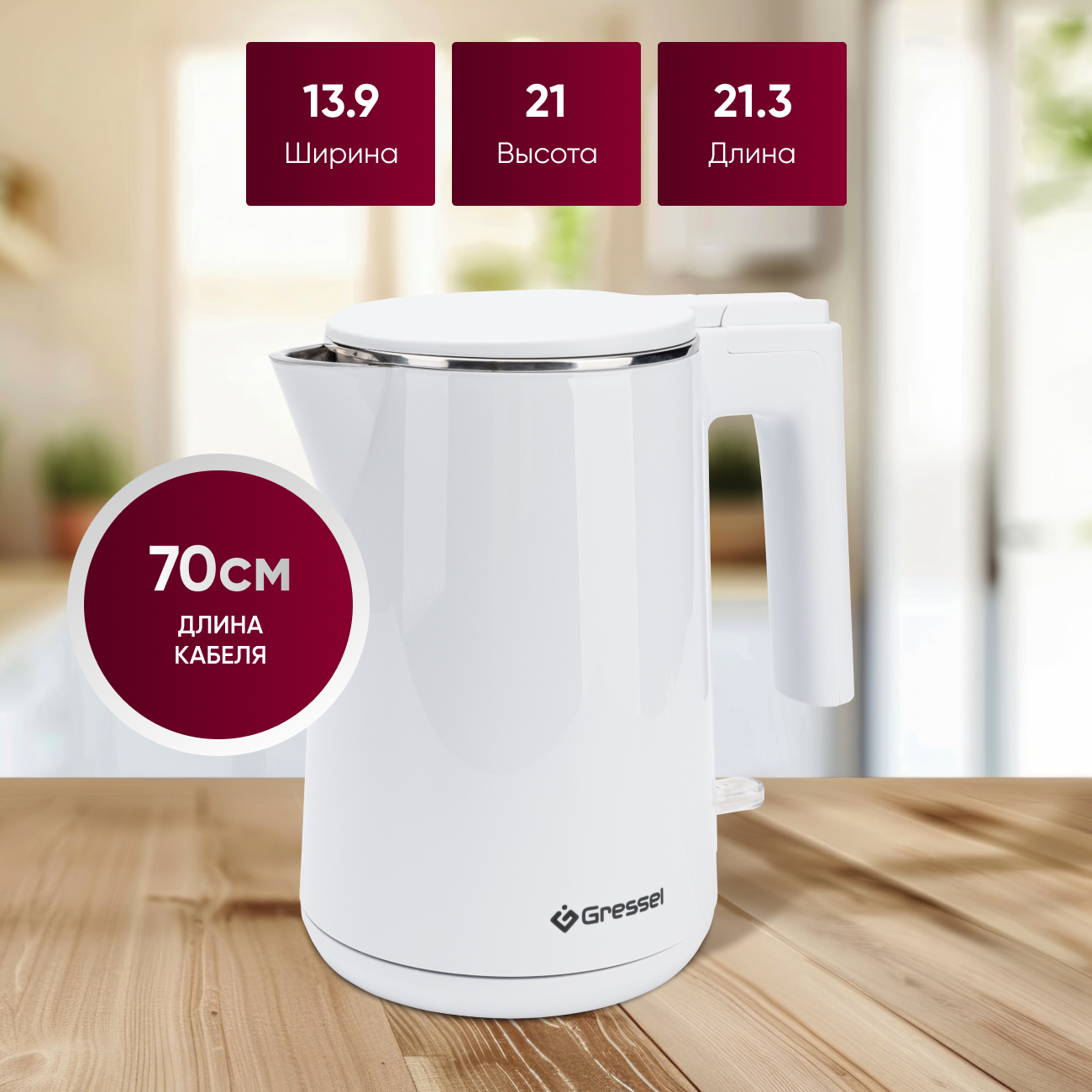 Электрический чайник GRK-1103 выделяется на рынке благодаря своей компактности, производительности и долговечности. Он оснащён контроллером Strix, который гарантирует до 15,000 циклов закипания, и мощностью 1500 Ватт, что позволяет быстро вскипятить до 1 литра воды.