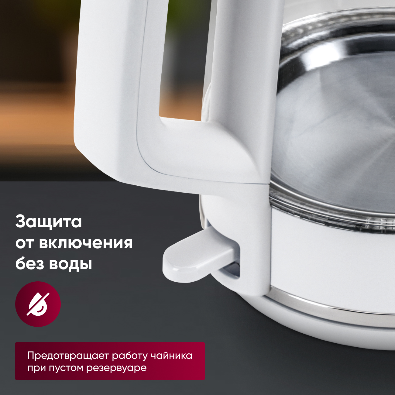 Функции защиты от перегрева и включения без воды предотвращают повреждения и продлевают срок службы. Чайник автоматически отключается, если резервуар пуст, обеспечивая спокойствие и безопасность на кухне.