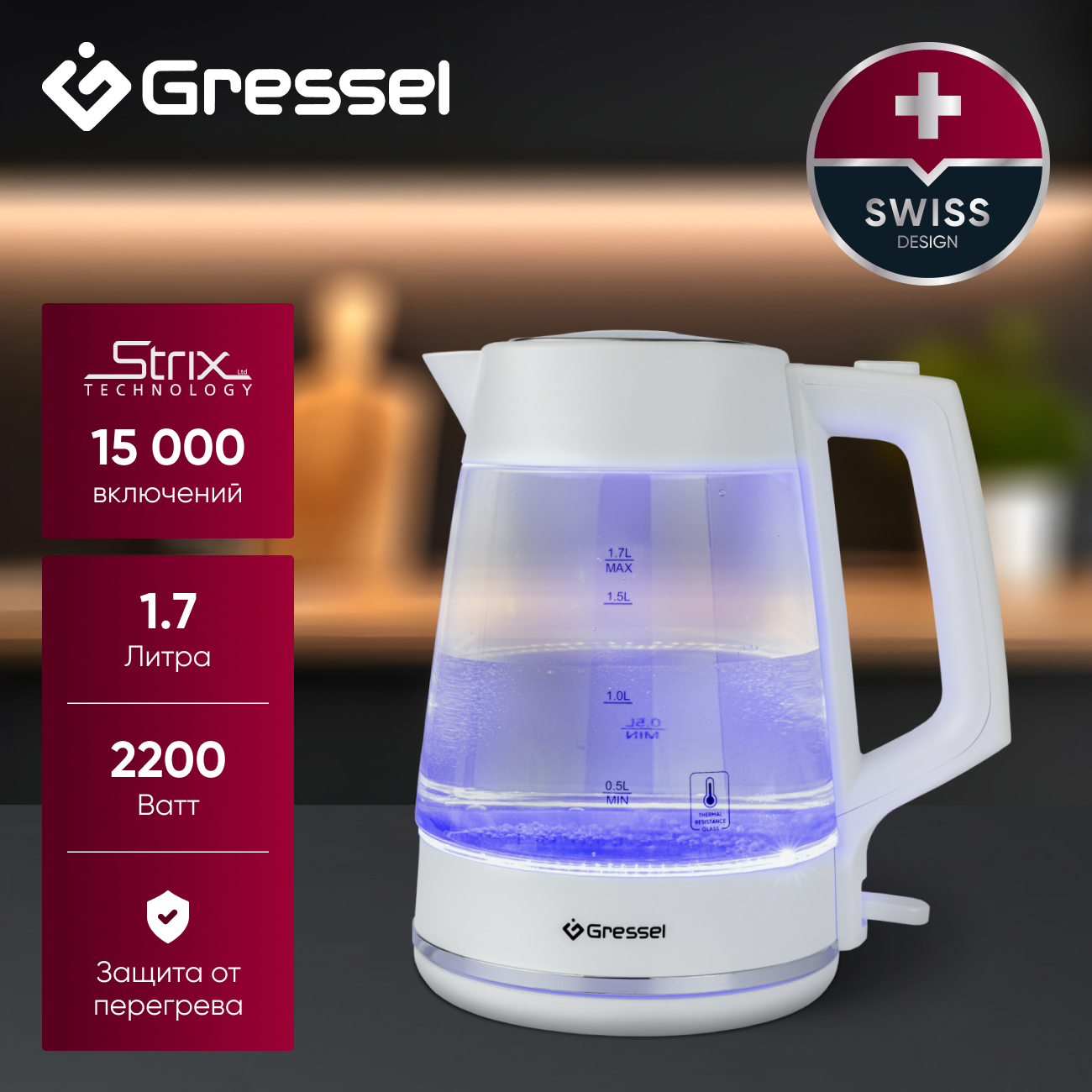 Электрический чайник Gressel GRK-1114 – стиль, безопасность и надежность в каждой детали