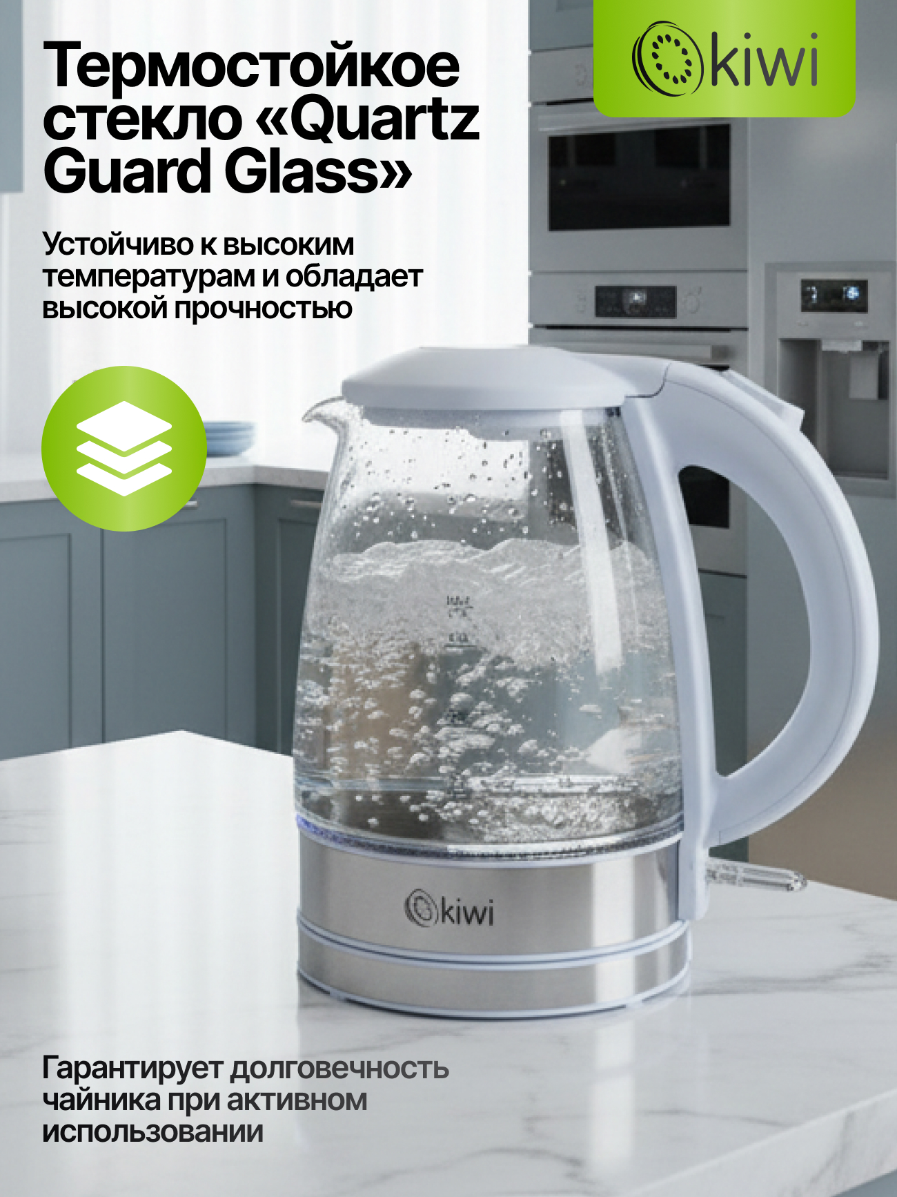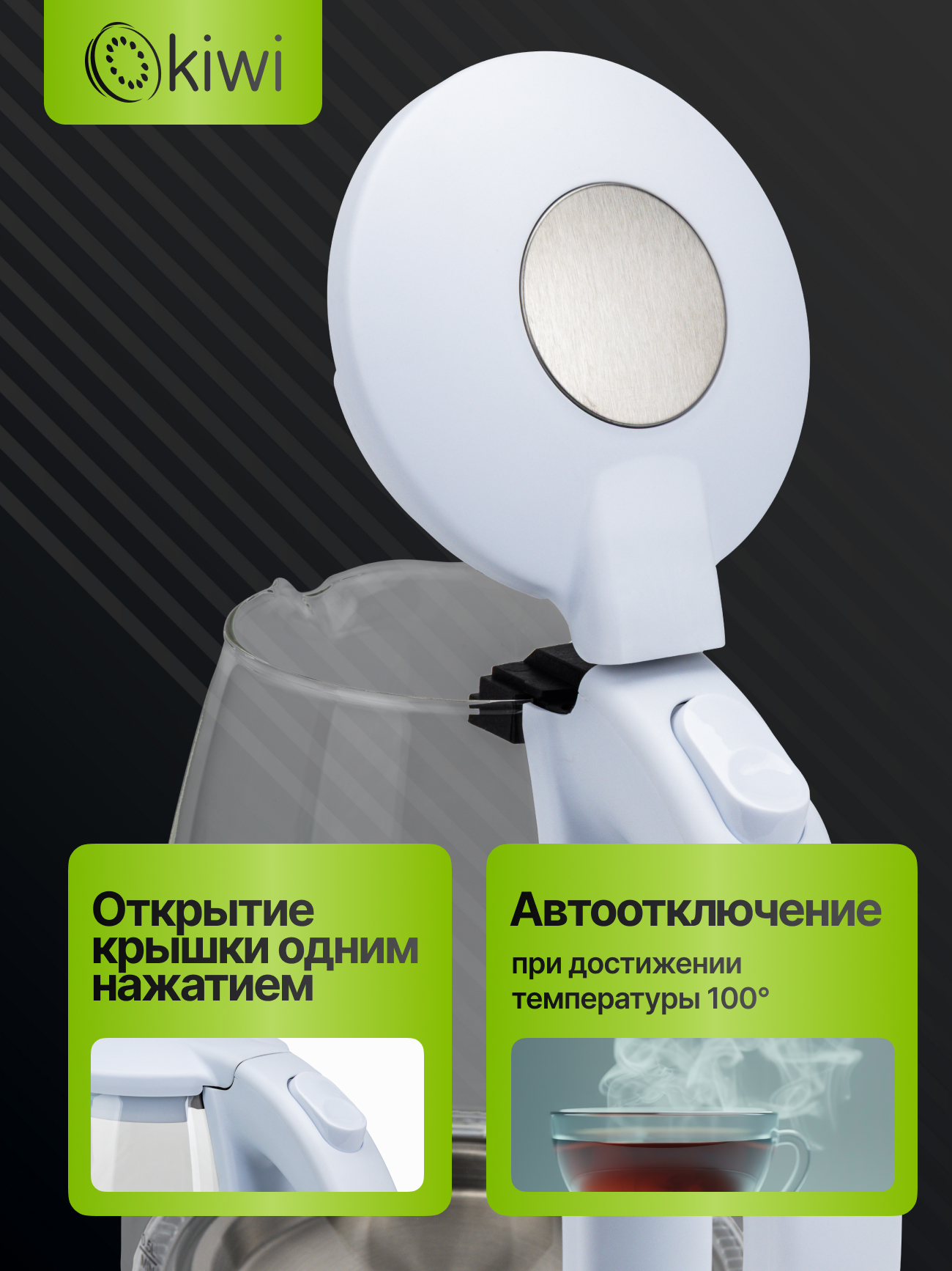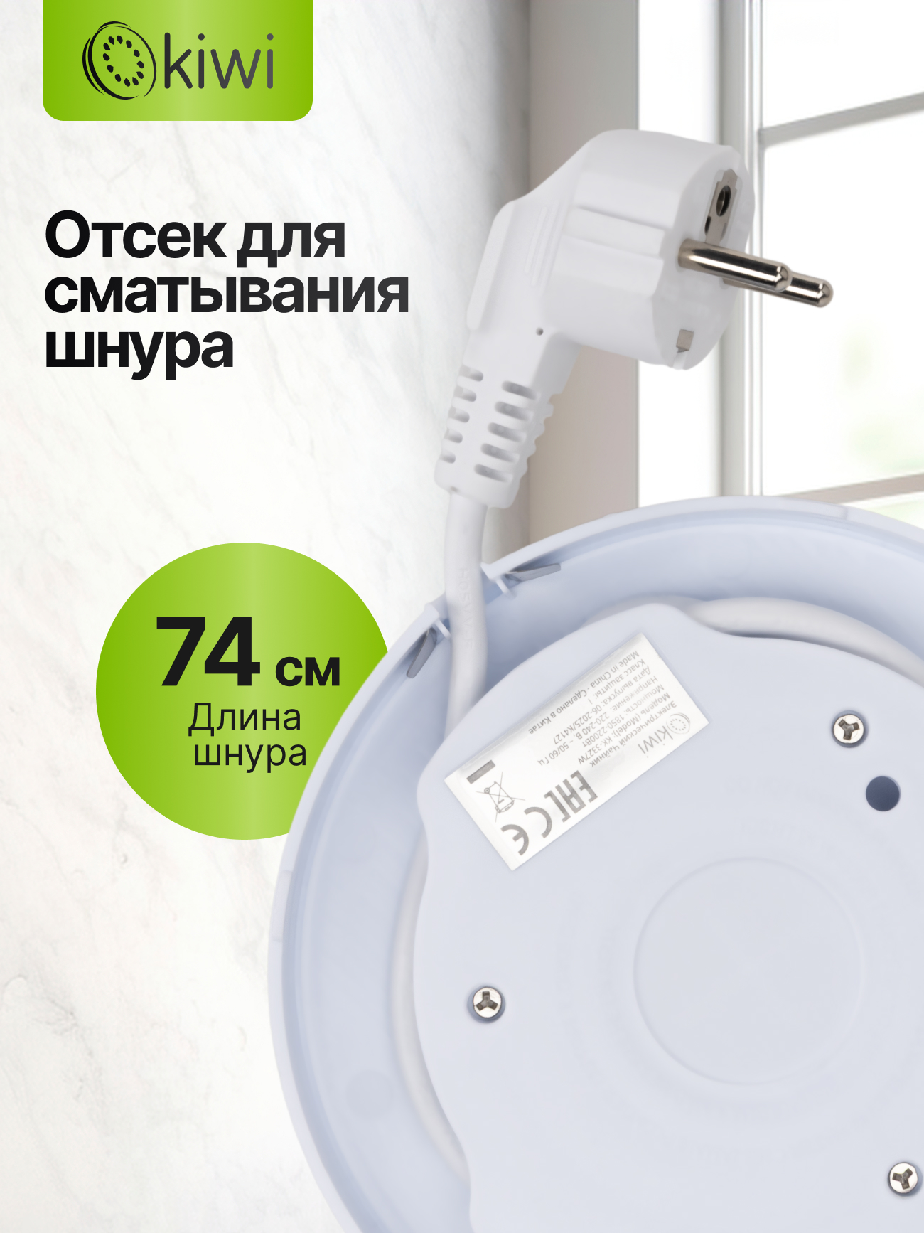 Электрический чайник Kiwi KK-3327W — это элегантное решение для быстрого кипячения воды. Корпус из термостойкого стекла и пластика выдерживает высокие температуры и обладает привлекательной отделкой. Мощность в 2200 Вт обеспечивает стремительное вскипание воды, экономя ваше время. Индикатор уровня воды помогает контролировать заполненность емкости. Объем чайника составляет 1,7 литра, что позволяет кипятить воду для нескольких чашек чая или кофе одновременно. Длина сетевого шнура в 70 см обеспечивает комфортное перемещение чайника по столу. Функция защиты от перегрева повышает безопасность использования. Чайник весит всего 1,15 кг, удобен в обращении и обслуживании. Гарантия на изделие составляет 1 год.