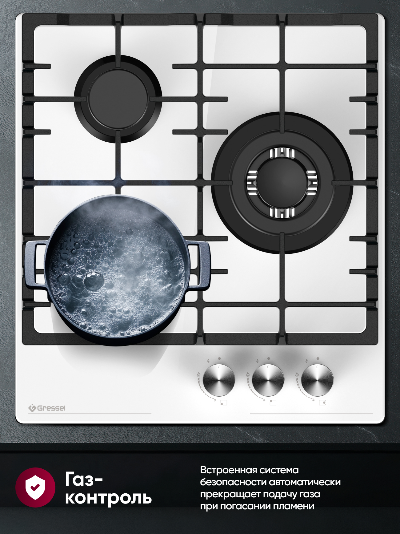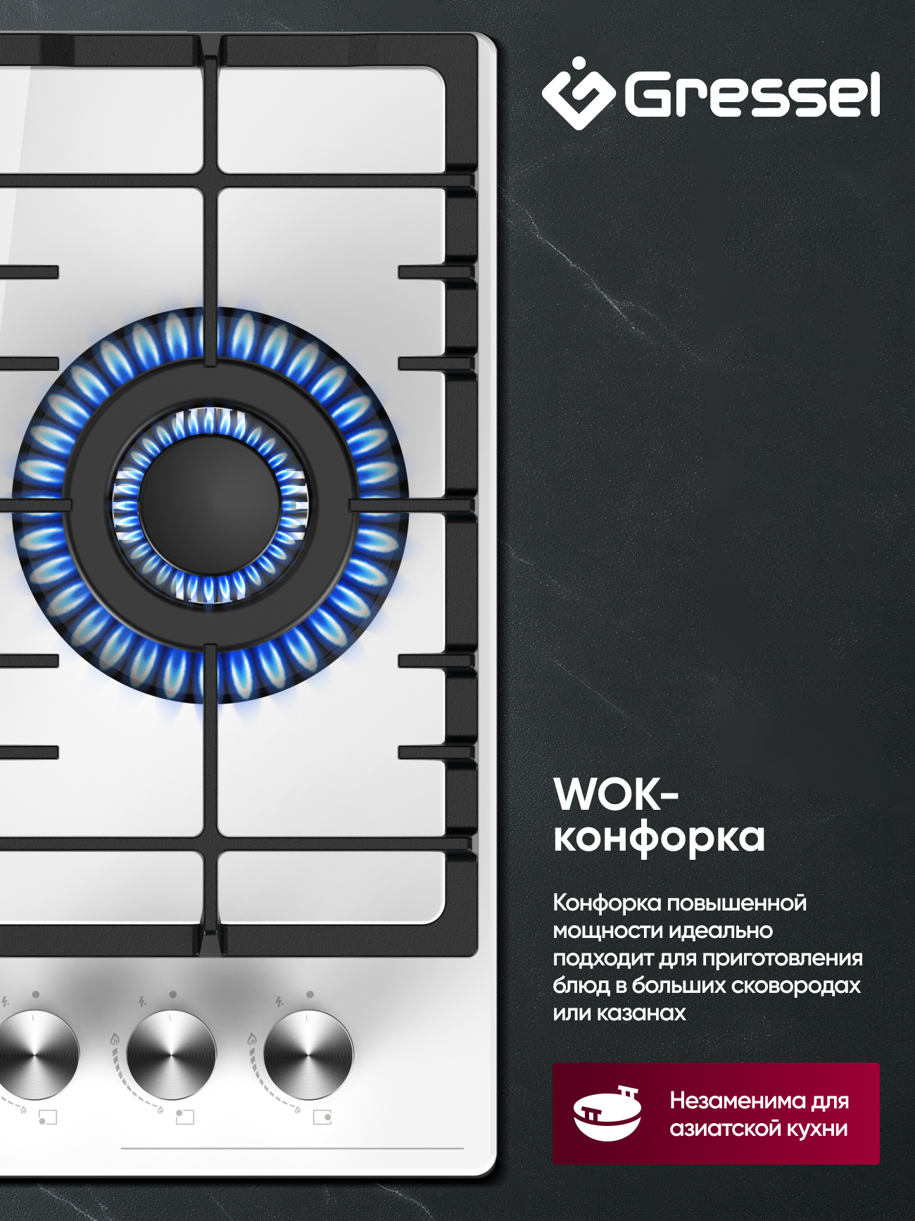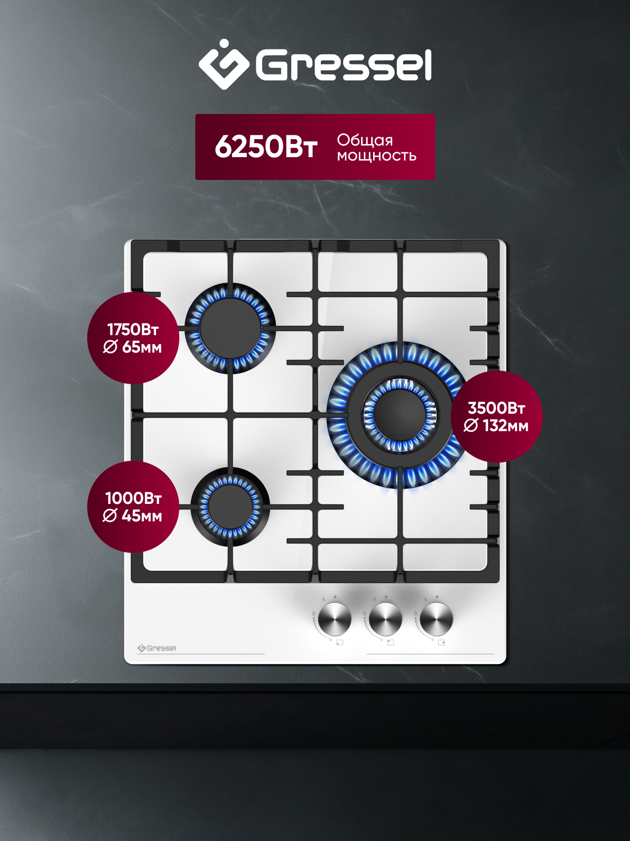 Варочная панель, инструкция, гарантийный талон, сертификат дополнительной гарантии, шнур питания, набор для крепления, набор жиклеров для балонного газа, форсунки для сжиженного нефтяного газа, газовый соединитель 90°C