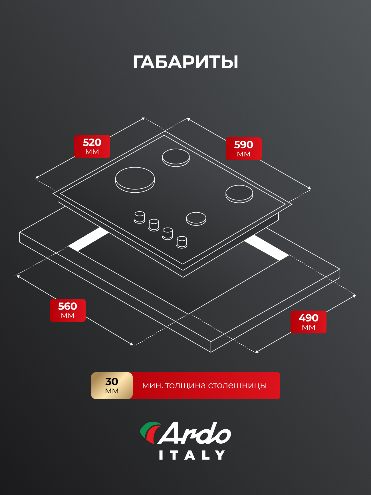Минимальная толщина столешницы, мм