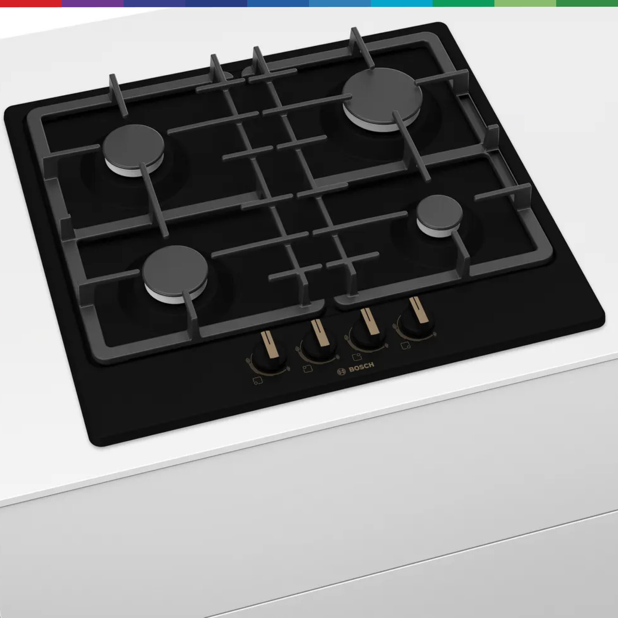 Газовая варочная панель Bosch PGP6B3B92R, конфорок - 4 шт, электроподжиг, газ-контроль, черный