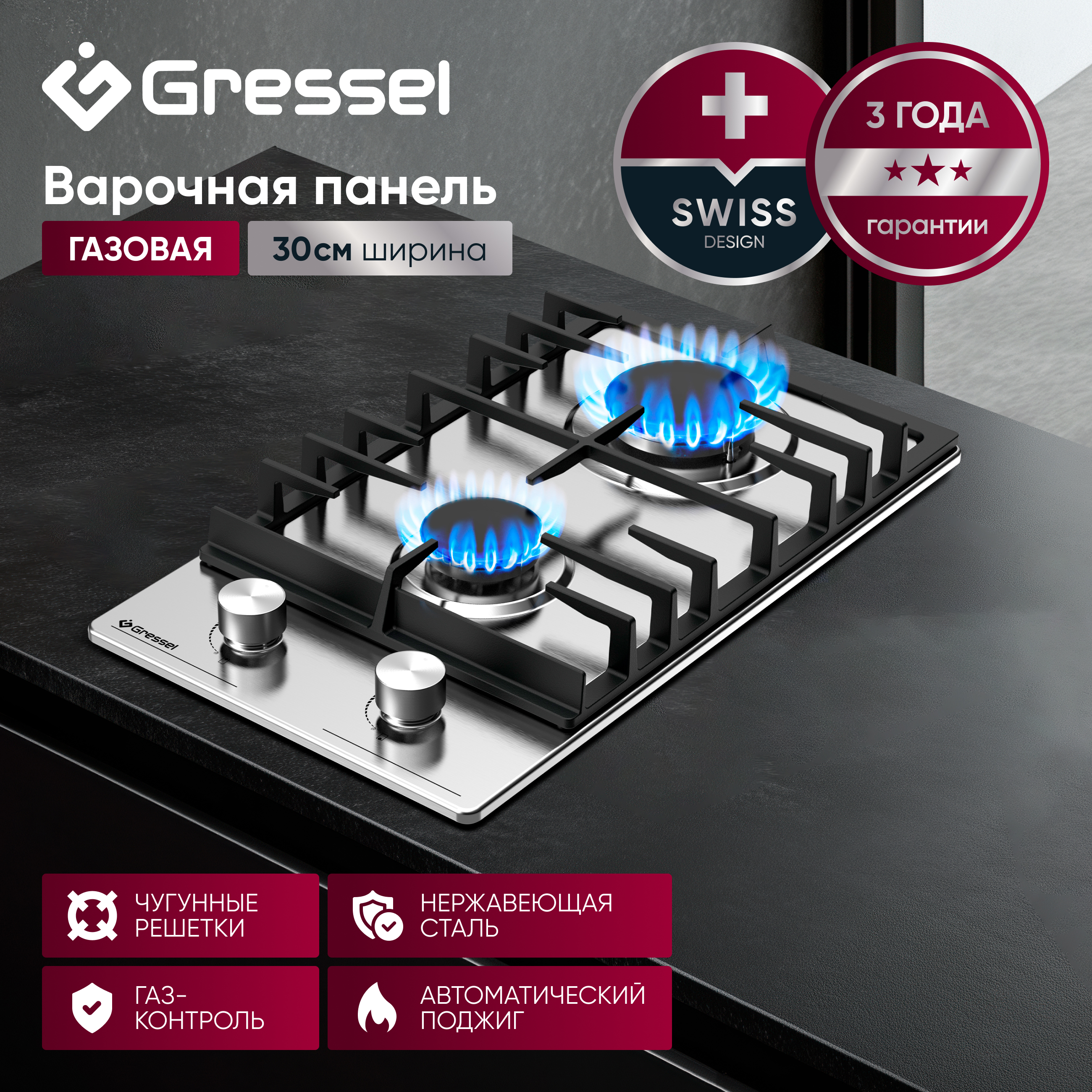 Газ-контроль: Система безопасности автоматически прекращает подачу газа при затухании пламени, защищая вашу кухню.