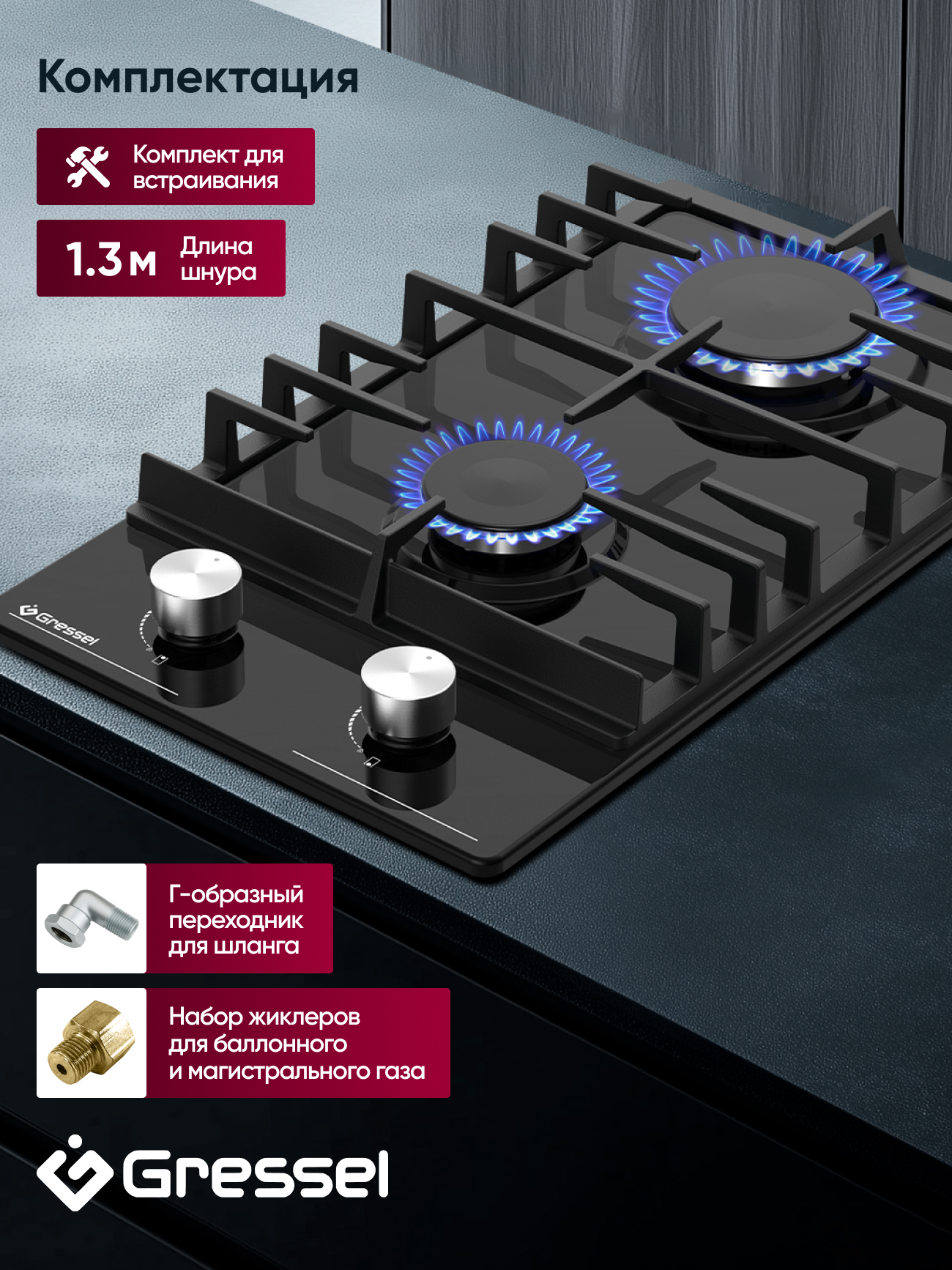 Варочная панель, инструкция, гарантийный талон, сертификат дополнительной гарантии, шнур питания, набор для крепления, набор жиклеров для балонного газа