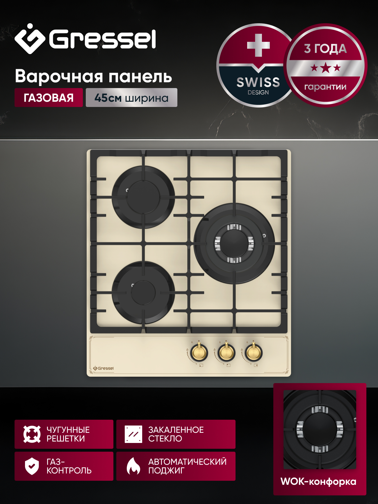Газовая варочная панель GRESSEL U45H35G100 45 см