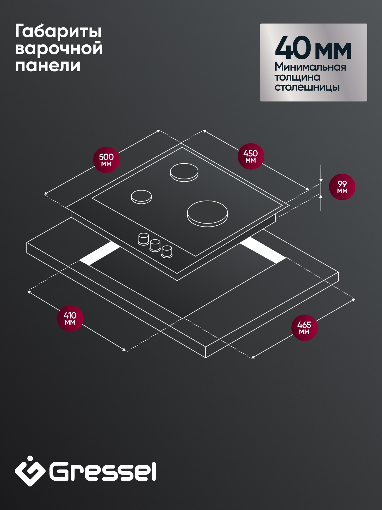 Газовая варочная панель GRESSEL U45N35C088 45 см