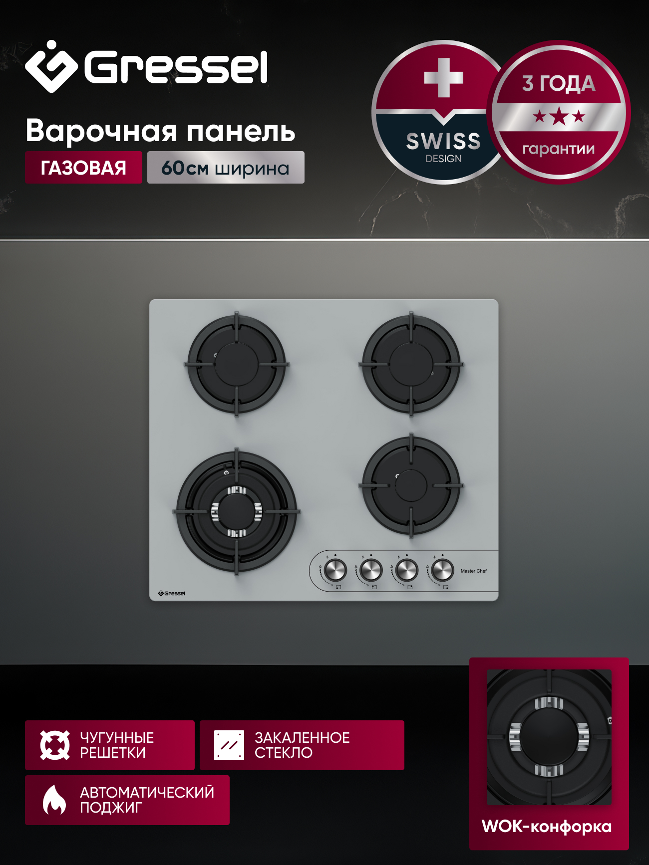 Газовая варочная панель GRESSEL U60N41S100 60 см