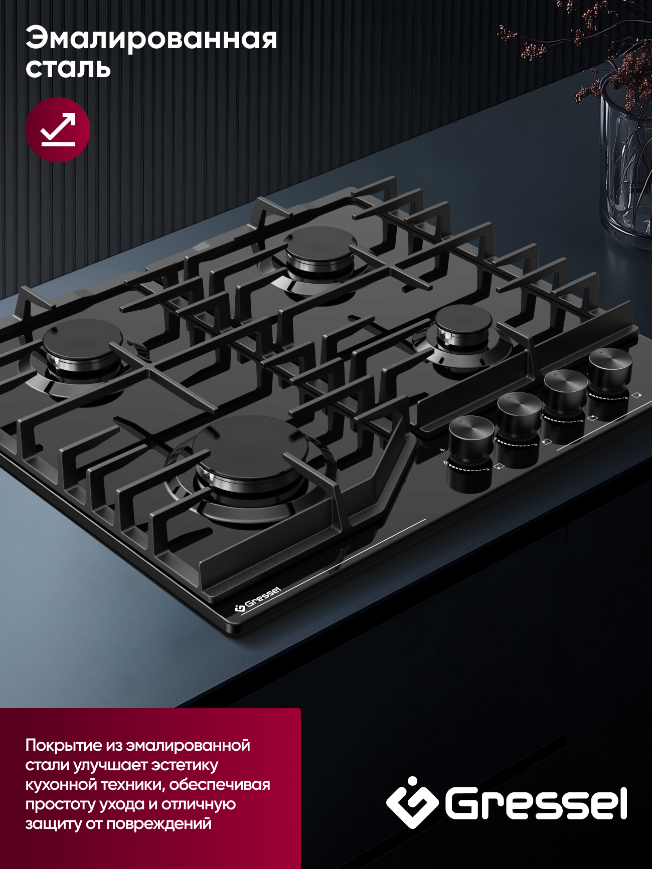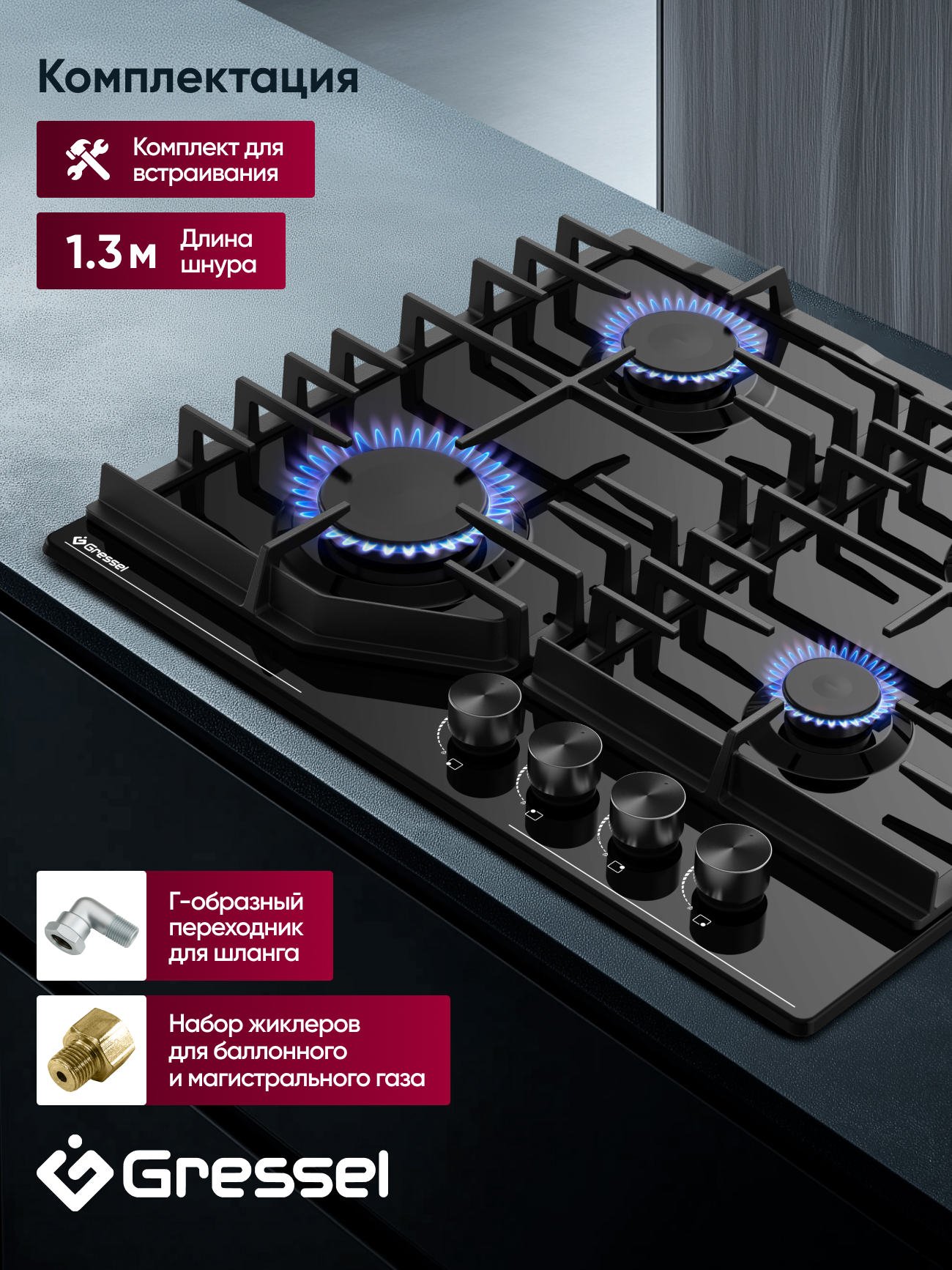 Газовая варочная панель Gressel шириной 60 см станет надежным помощником на вашей кухне. Модель оснащена четырьмя газовыми конфорками разного диаметра (180 мм, 120 мм, 100 мм), что позволит вам готовить блюда в посуде различного размера. Общая мощность конфорок составляет 7500 Вт, обеспечивая быстрый и равномерный нагрев. Управление панелью осуществляется механически, что делает ее простым и удобным в использовании. Прочная эмалированная стальная поверхность легко очищается от загрязнений, а чугунные решетки обеспечивают устойчивость посуды. Автоподжиг каждой конфорки упрощает процесс розжига, делая готовку еще более комфортной. В комплект поставки входят все необходимые аксессуары для подключения и установки панели, а также гарантийный талон и сертификат дополнительной гарантии.