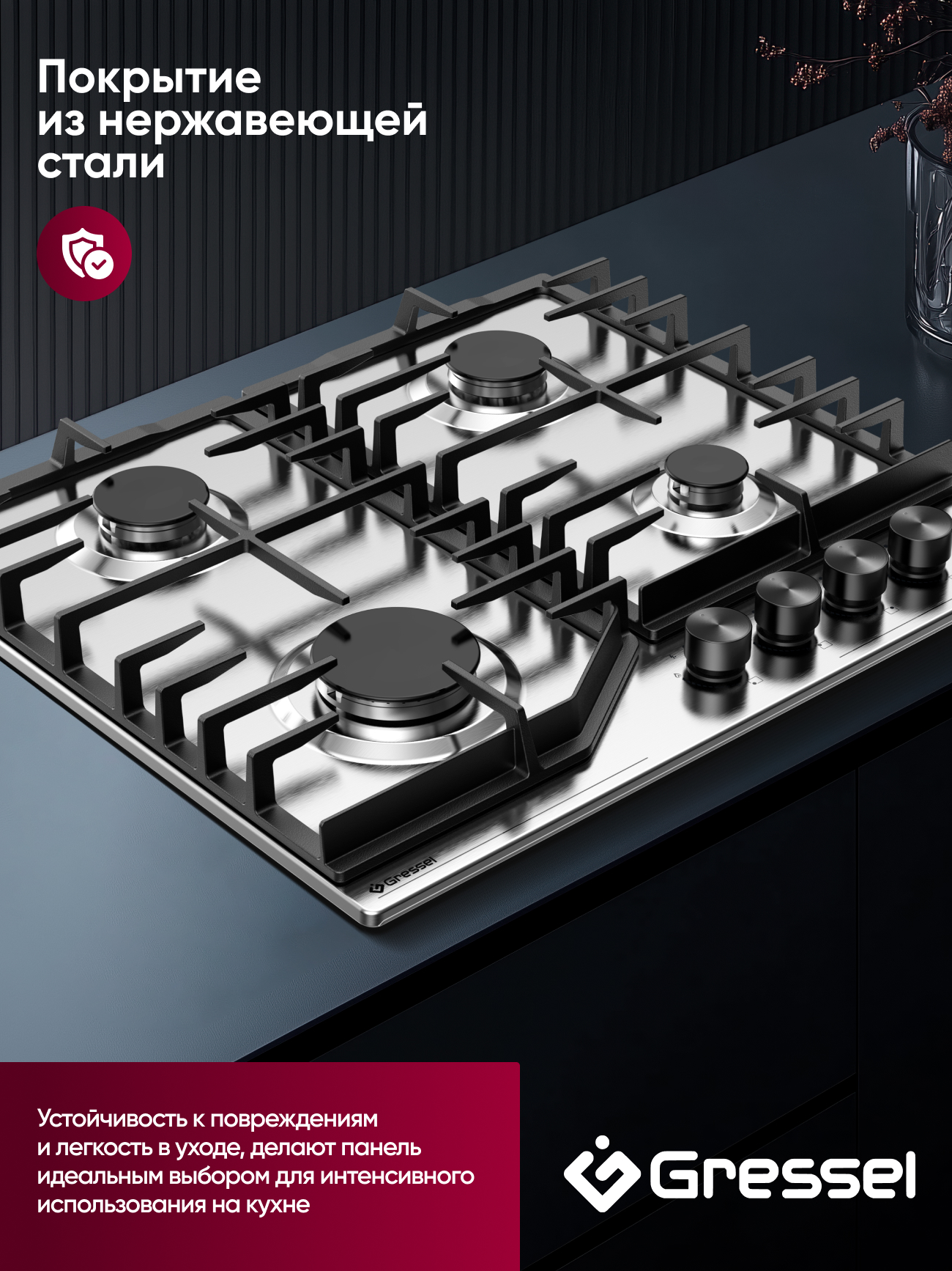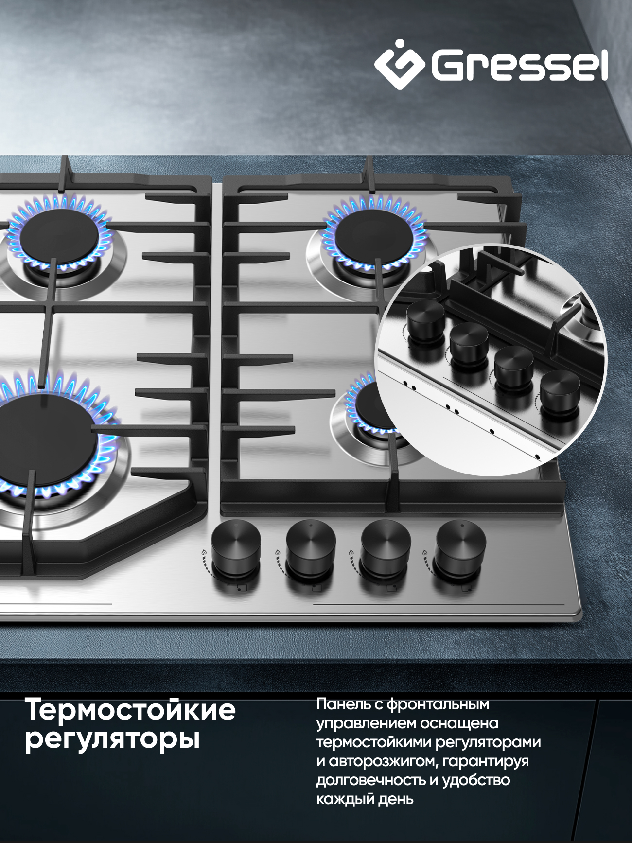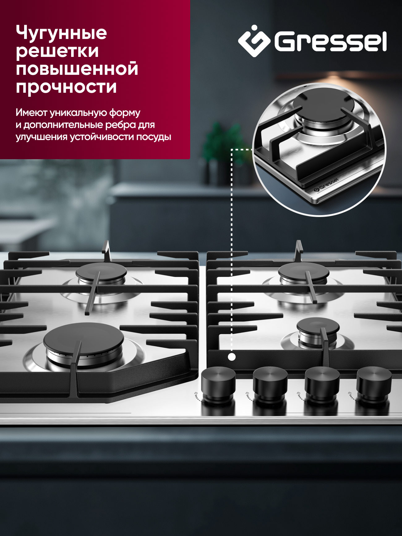 Варочная панель, инструкция, гарантийный талон, сертификат дополнительной гарантии, шнур питания, набор для крепления, набор жиклеров для балонного газа, форсунки для сжиженного нефтяного газа, газовый соединитель 90°C