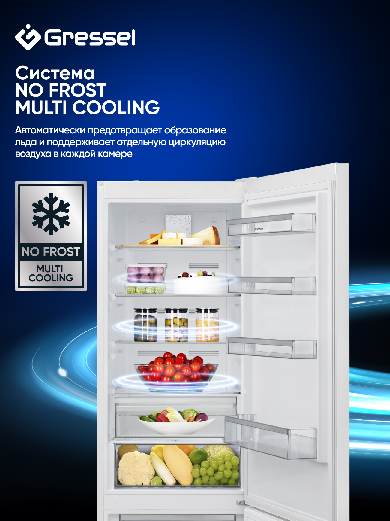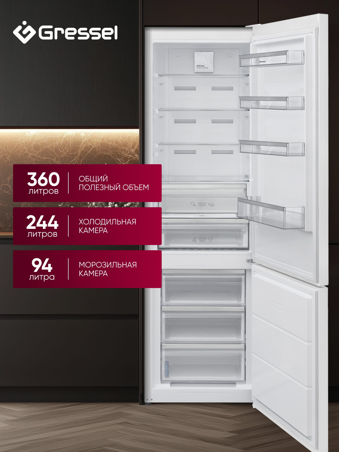 Двухкмерный холодильник Gressel UDW49105, NO FROST, 360 л полезный объем, А++ класс энергоптребления, Система контроля влажности