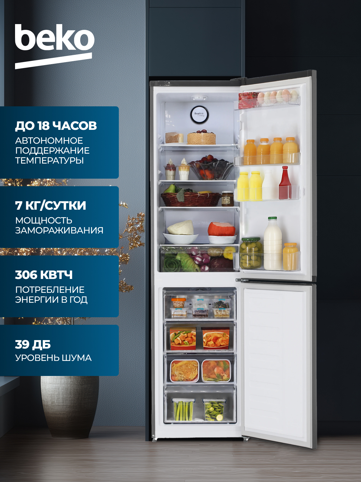Размеры (ВхШхГ), см: 201x54x60. Общий объем брутто, л 335. Общий полезный объем 300 л (ХОЛОД.ОТД: 200 + МОРОЗ.ОТД: 100). 1 компрессор (R600a). , Двухконтурная система охлаждения No Frost Dual Cooling. Уровень шума, дБ 40.Энергопотребление, кВтч/год: 306. Время сохранения температуры без электричества ч.: 18. Перенавешиваемые двери. Встроенные ручки. Антибактериальное покрытие резинового уплотнителя дверей. ХОЛОД.ОТД: LED освещение. Количество ящиков 1. Регулируемые полки из закаленного стекла: 3 Дверные полки, шт: 4. Подставки для яиц. . МОРОЗ.ОТД: 4 отделения поддон для ягод Ice Bank Мощность замораживания, кг/24 ч: 7. Климатический класс SN-T Класс энергоэффективности A+ Цвет: Серебристый