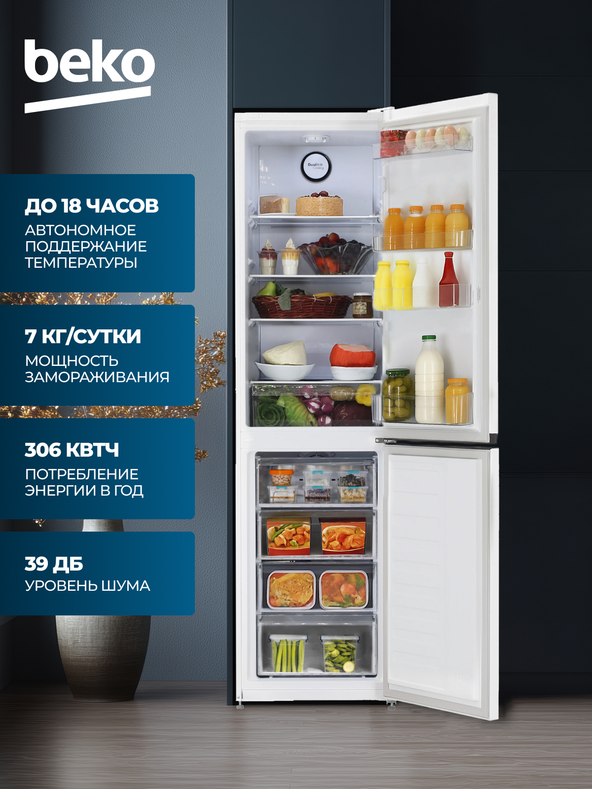 Размеры (ВхШхГ), см: 201x54x60. Общий объем брутто, л 335. Общий полезный объем 300 л (ХОЛОД.ОТД: 200 + МОРОЗ.ОТД: 100). 1 компрессор (R600a). , Двухконтурная система охлаждения No Frost Dual Cooling. Уровень шума, дБ 40.Энергопотребление, кВтч/год: 306. Время сохранения температуры без электричества ч.: 18. Перенавешиваемые двери. Встроенные ручки. Антибактериальное покрытие резинового уплотнителя дверей. ХОЛОД.ОТД: LED освещение. Количество ящиков 1. Регулируемые полки из закаленного стекла: 3 Дверные полки, шт: 4. Подставки для яиц. . МОРОЗ.ОТД: 4 отделения поддон для ягод Ice Bank Мощность замораживания, кг/24 ч: 7. Климатический класс SN-T Класс энергоэффективности A+ Цвет: Белый