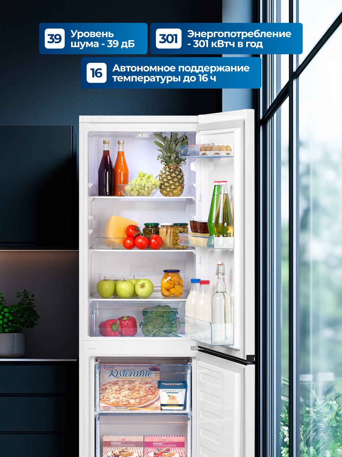 Размеры (ВхШхГ), см: 158x54x60. Общий объем брутто, л 250. Общий полезный объем 240 л (ХОЛОД.ОТД: 175 + МОРОЗ.ОТД:65). 1 компрессор (R600a). , Статическая система охлаждения, Уровень шума, дБ 40.Энергопотребление, кВтч/год: 301. Время сохранения температуры без электричества ч.: 16. Перенавешиваемые двери. Встроенные ручки. Антибактериальное покрытие резинового уплотнителя и ручек дверей. ХОЛОД.ОТД: LED освещение. Количество ящиков 1. Регулируемые полки из закаленного стекла: 3 Дверные полки, шт: 3. Подставка для яиц. . МОРОЗ.ОТД: 2 отделения, поддон для ягод Ice Bank, Мощность замораживания, кг/24 ч: 4. Климатический класс SN Класс энергоэффективности A Цвет: Белый