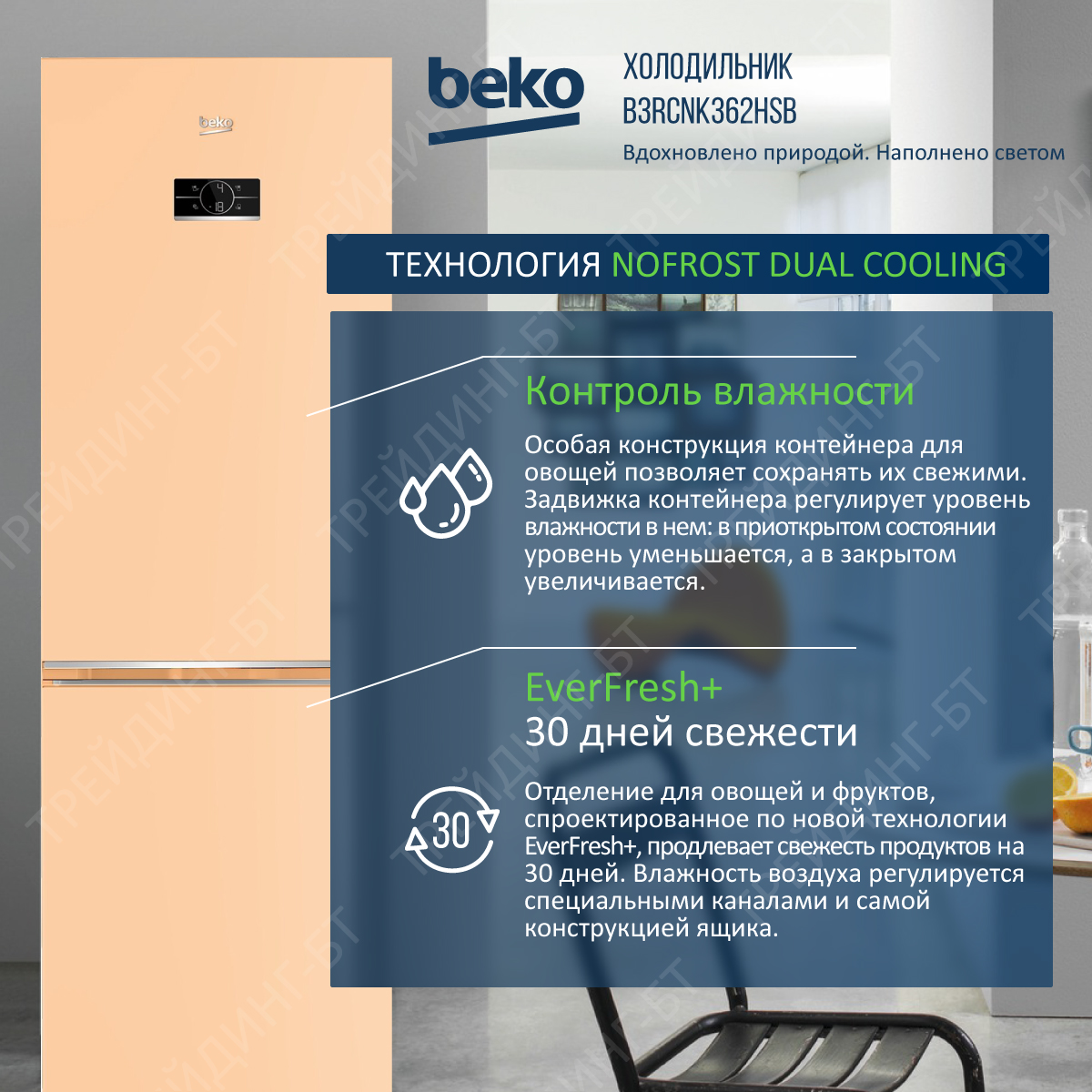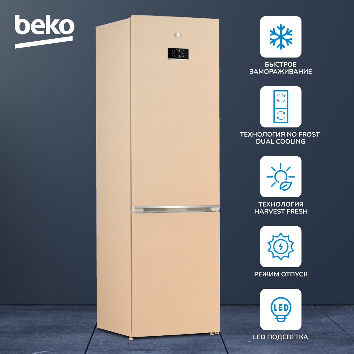 Двухконтурная система охлаждения No Frost Dual Cooling, Режим "Отпуск", МОРОЗ.ОТД: быстрое замораживание Quick Freeze, Режим экономии энергии