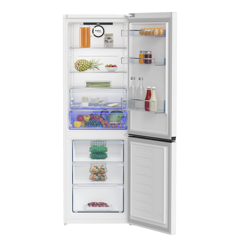Холод. отд.: Зона свежести 0-3˚C , LED освещение, 2 ящика, 2 регулируемые полки из закаленного стекла, 3 дверные полки, подставка для яиц. Мороз. отд.: 3 отделения, поддон для ягод Ice Bank