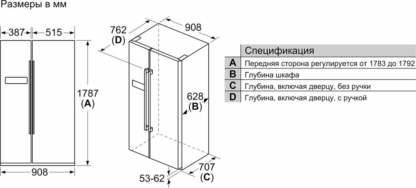 - Расположение морозильной камеры: слева