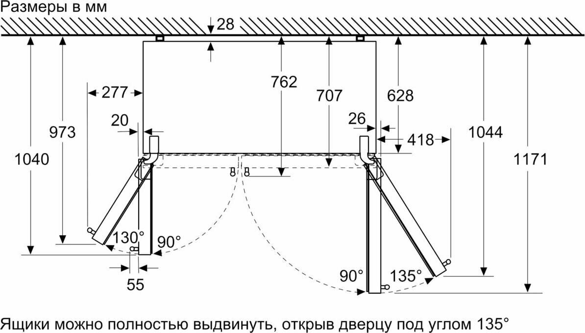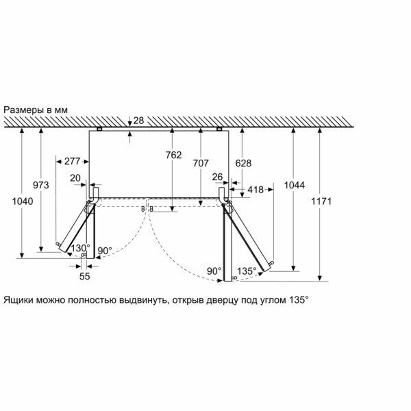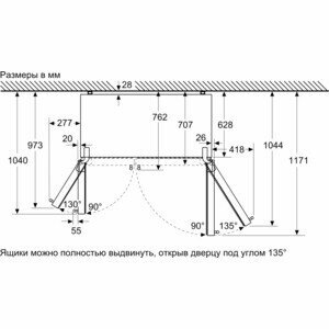- Общий полезный объем: 616 л