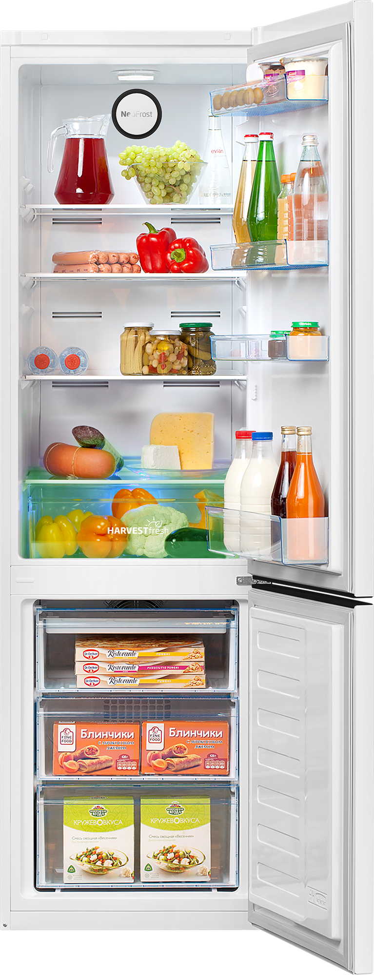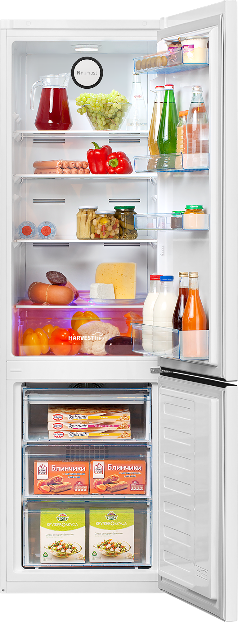 Инновационная технология 3-х цветов от Beko внутри отделения для фруктов и овощей воссоздает природный световой цикл, дольше сохраняя витамины в овощах и фруктах. Бывает сложно увидеть все продукты в холодильнике, особенно в углах и возле задней стенки. LED подсветка обеспечивает превосходный обзор всей камеры и потребляет меньше электроэнергии, чем обычная подсветка. Вам удобнее, чтобы дверь холодильника открывалась в другую сторону? Для холодильников Beko это не проблема. Петли перенавешиваемых дверей можно расположить как с левой, так и с правой стороны холодильника, позволяя выбрать, в какую сторону будут открываться его двери. На время вашего отсутствия вы можете перевести холодильник в режим Отпуск и отключить холодильное отделение. Это позволит сэкономить на счете за электричество и в тоже время не беспокоиться за сохранность продуктов в морозильной камере. С системой NoFrost не нужно регулярно размораживать холодильник.