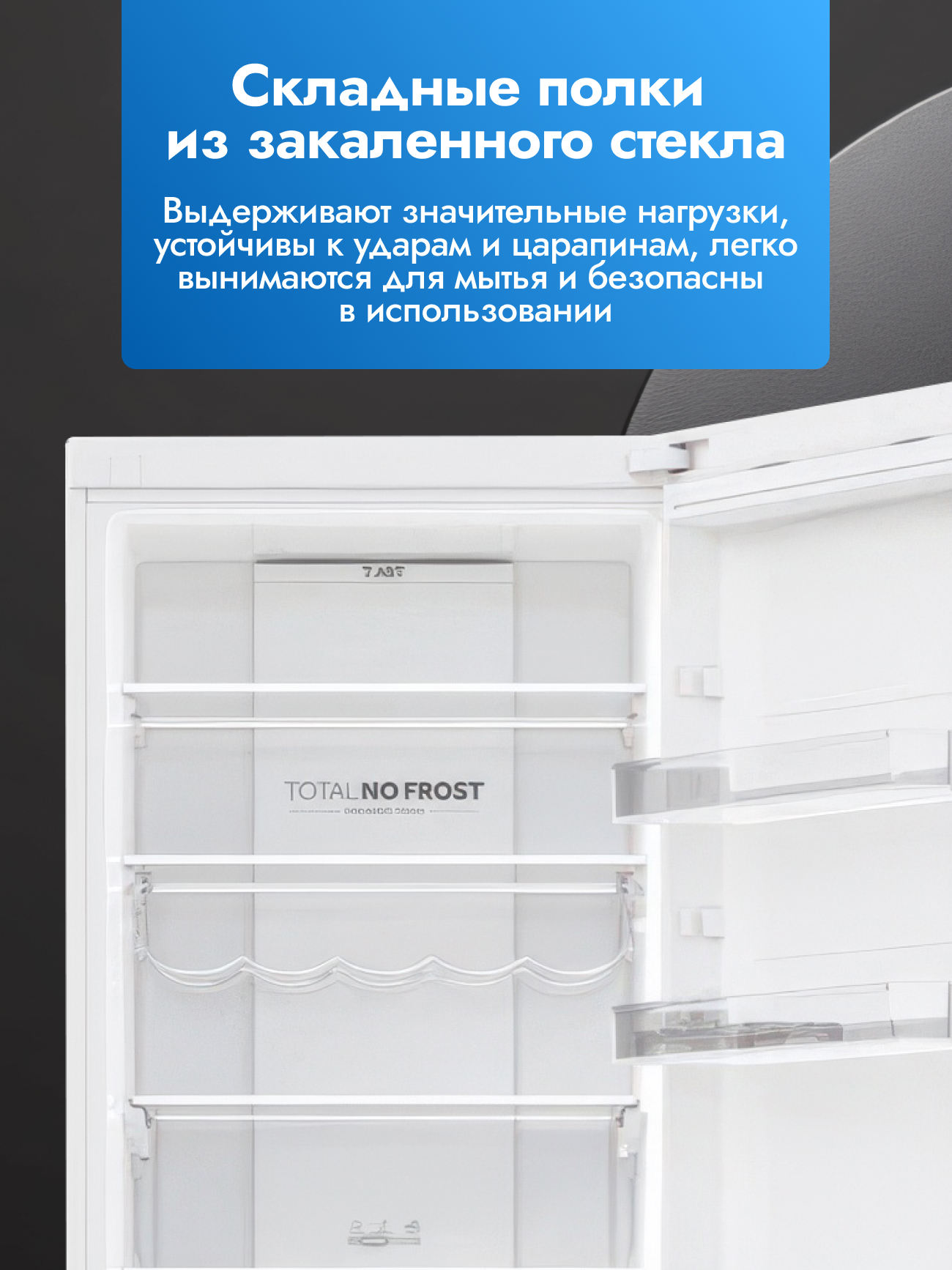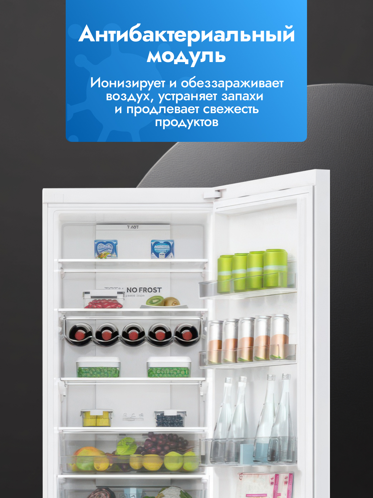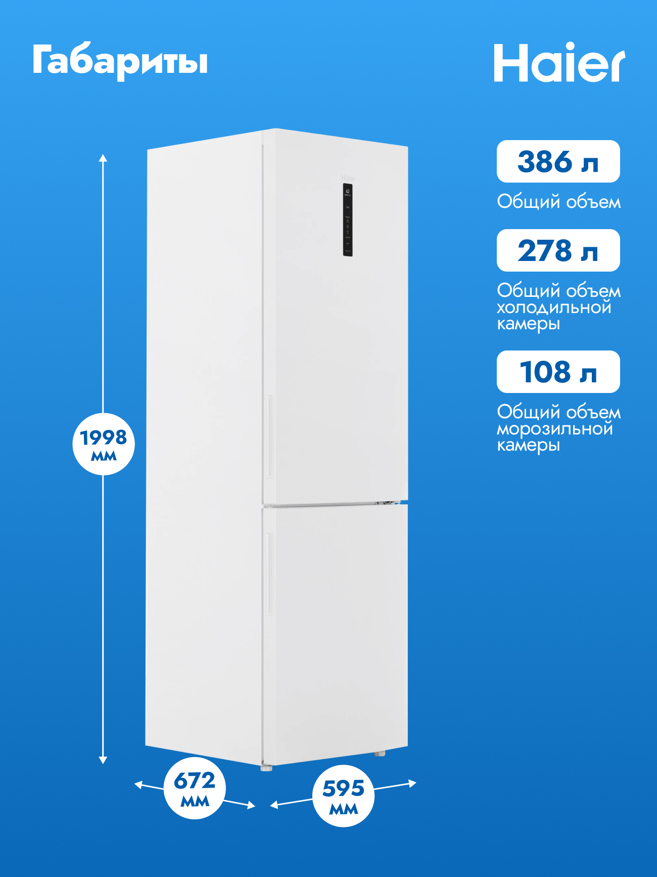 HAIER C2F637CWMVU1 — двухкамерный холодильник высотой 199,8 см. Вместительное (278 л) холодильное отделение позволяет хранить сразу много продуктов — это понравится большим семьям или тем, кто любит готовить. Для максимально качественного и длительного хранения продуктов здесь реализована технология антибактериальной защиты T.ABT, в которой используются свойства природного минерала турмалина — воздух в холодильнике ионизируется, количество бактерий и неприятных запахов благодаря этому минимизируется. Контейнер 0º Zone специально создан для хранения охлаждённого мяса, морепродуктов, сыров и различных деликатесов — в нём можно изменять влажность, а температура всегда около 0 градусов. Овощи и фрукты удобно хранить в выдвижном контейнере с разделителем пространства внутри. Многопоточное охлаждение MultiFlow равномерно распределяет холодный воздух — нет разницы температуры в нижней и верхней частях отделения. Современное светодиодное освещение яркое, долговечное и экономичное. К тому же, светодиоды не нагревают воздух в холодильном отделении, в отличие от ламп накаливания. В морозилке (108 л) выдвижные контейнеры разного размера для удобного размещения продуктов длительного хранения. No Frost в обоих отделениях избавляет от трудоёмкого ручного размораживания холодильника. Электронное управление с дисплеем делает эксплуатацию холодильника лёгкой и удобной. HAIER C2F637CWMVU1 — вместительный двухкамерный холодильник с современными технологиями хранения продуктов.