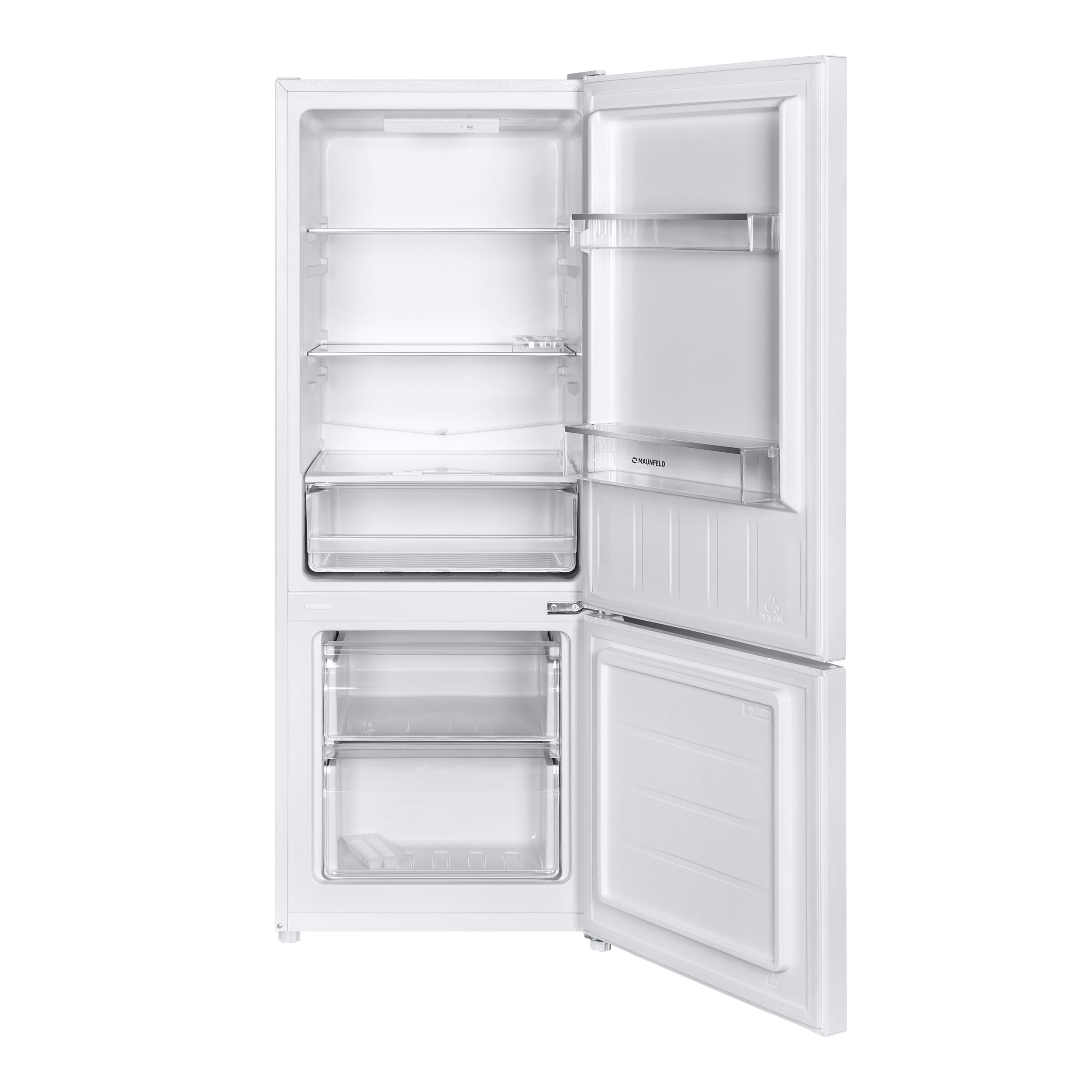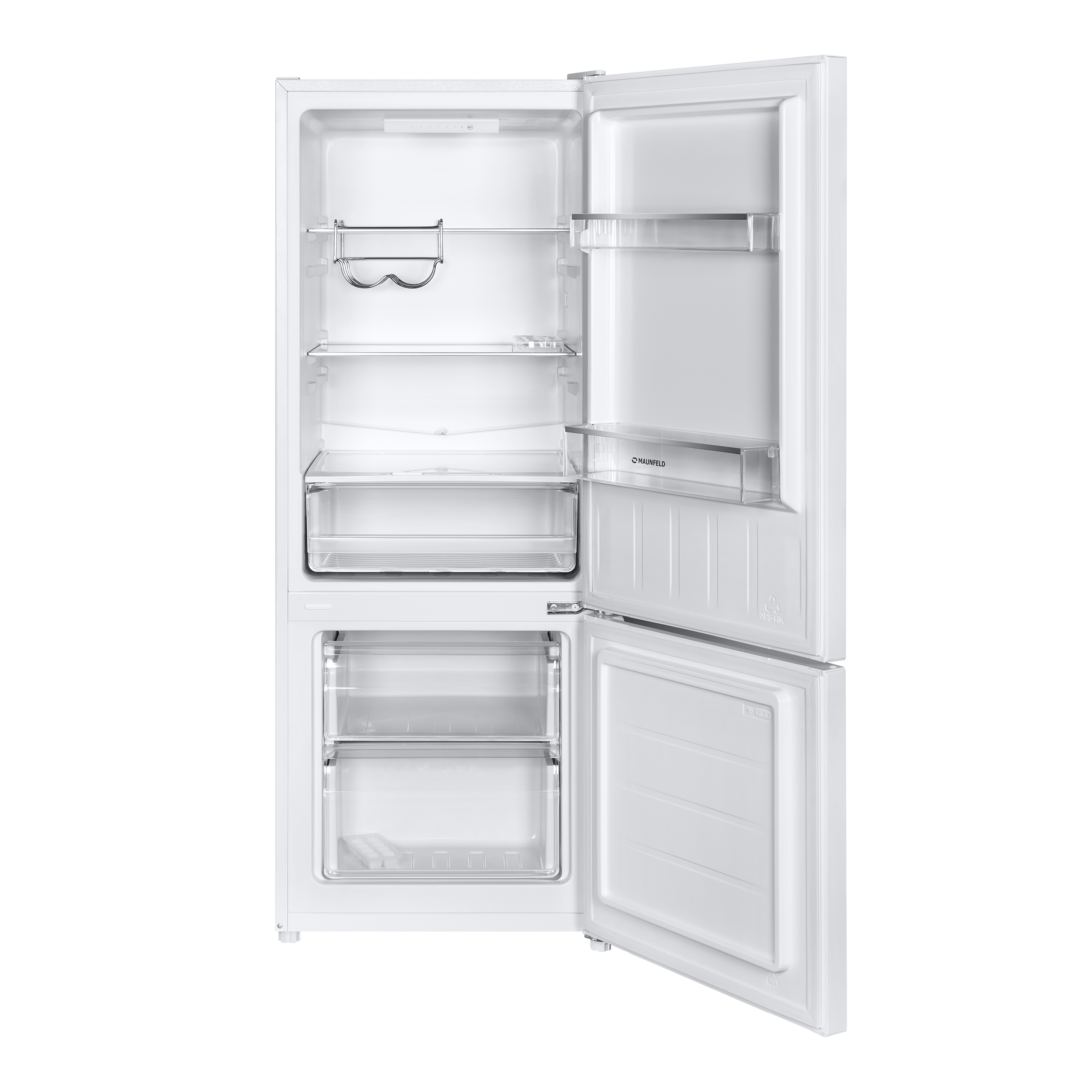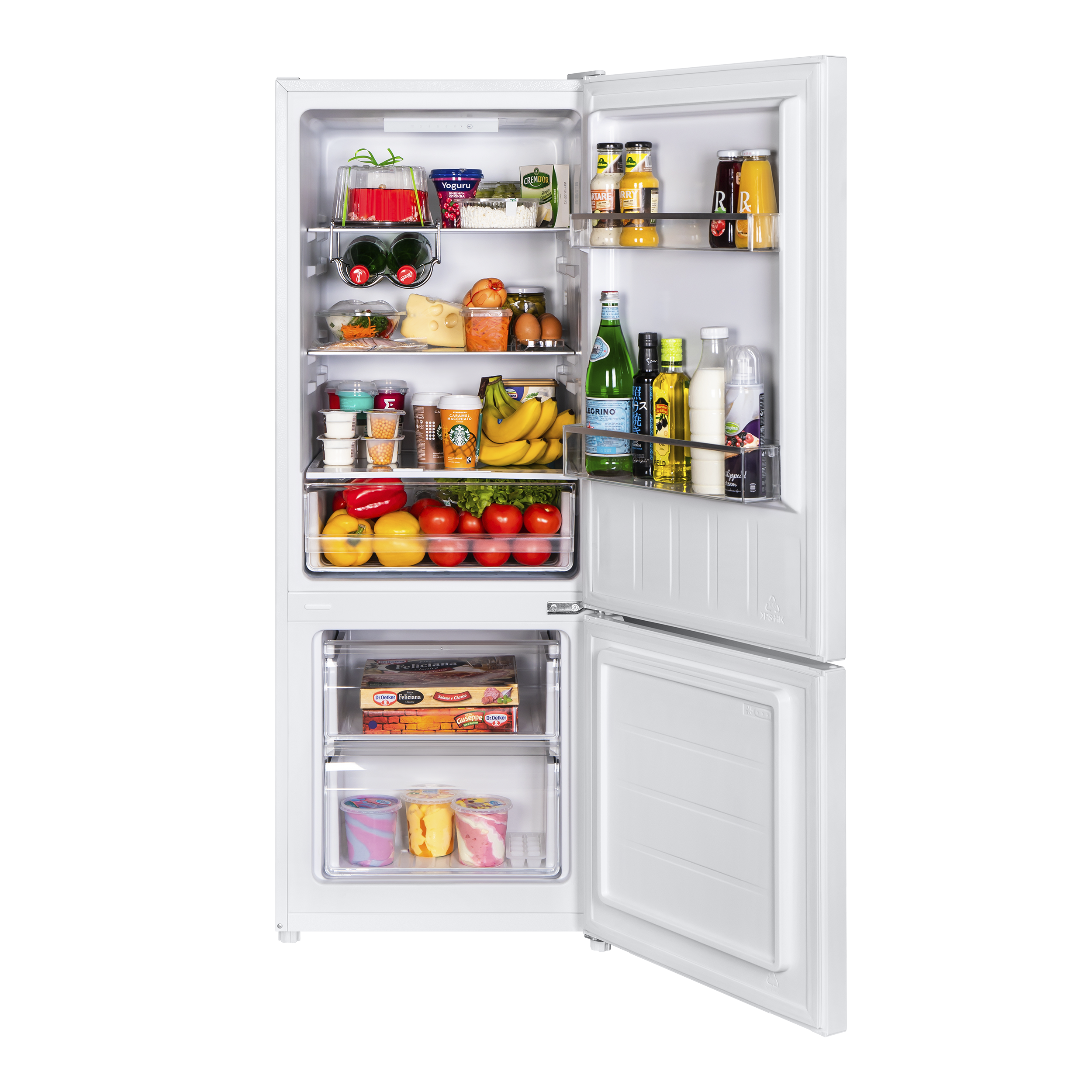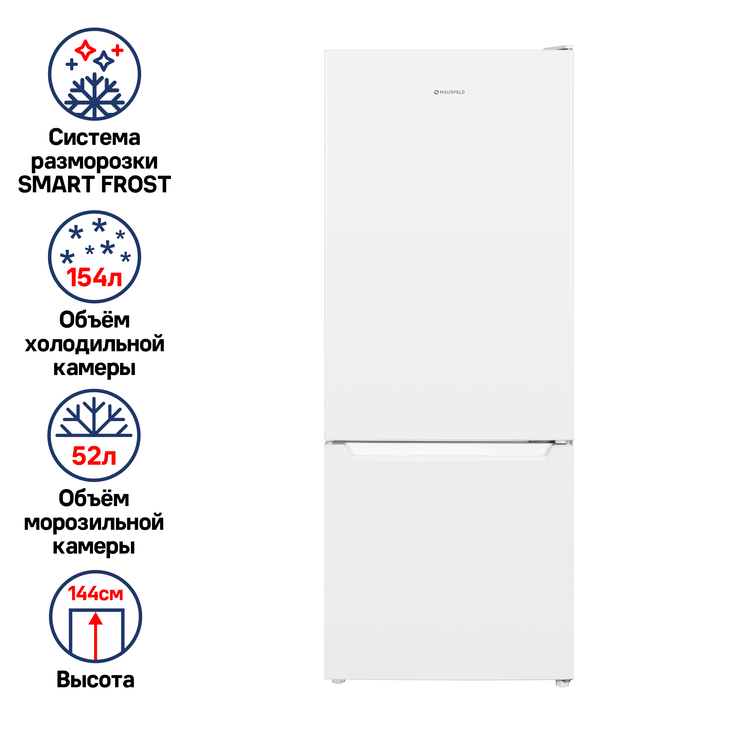 Современный двухкамерный холодильник высотой 144 см с сенсорным управлением.