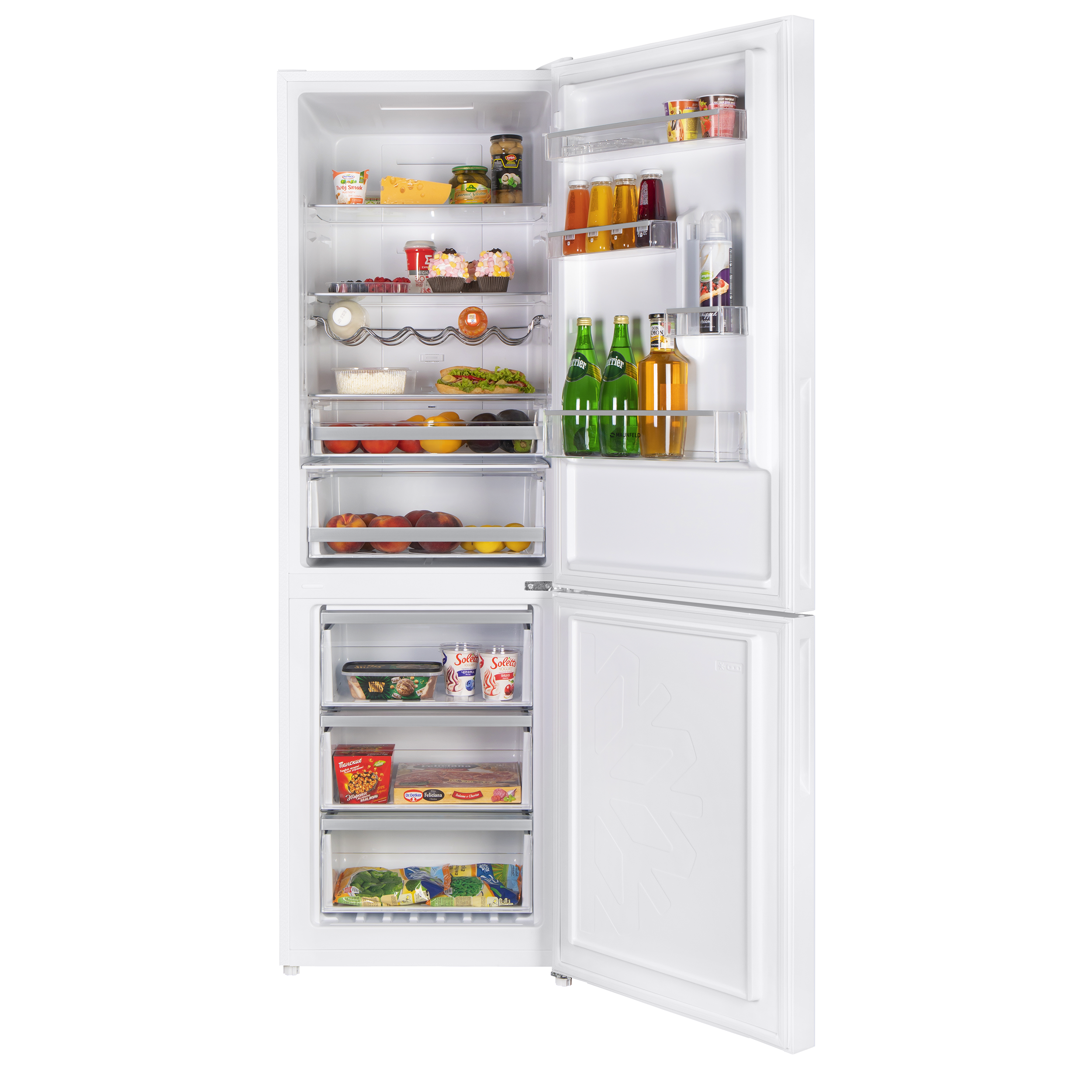 Удобная полка для хранения бутылок позволит вам охладить напитки перед подачей на стол. Стеклянные полки в морозильной камере