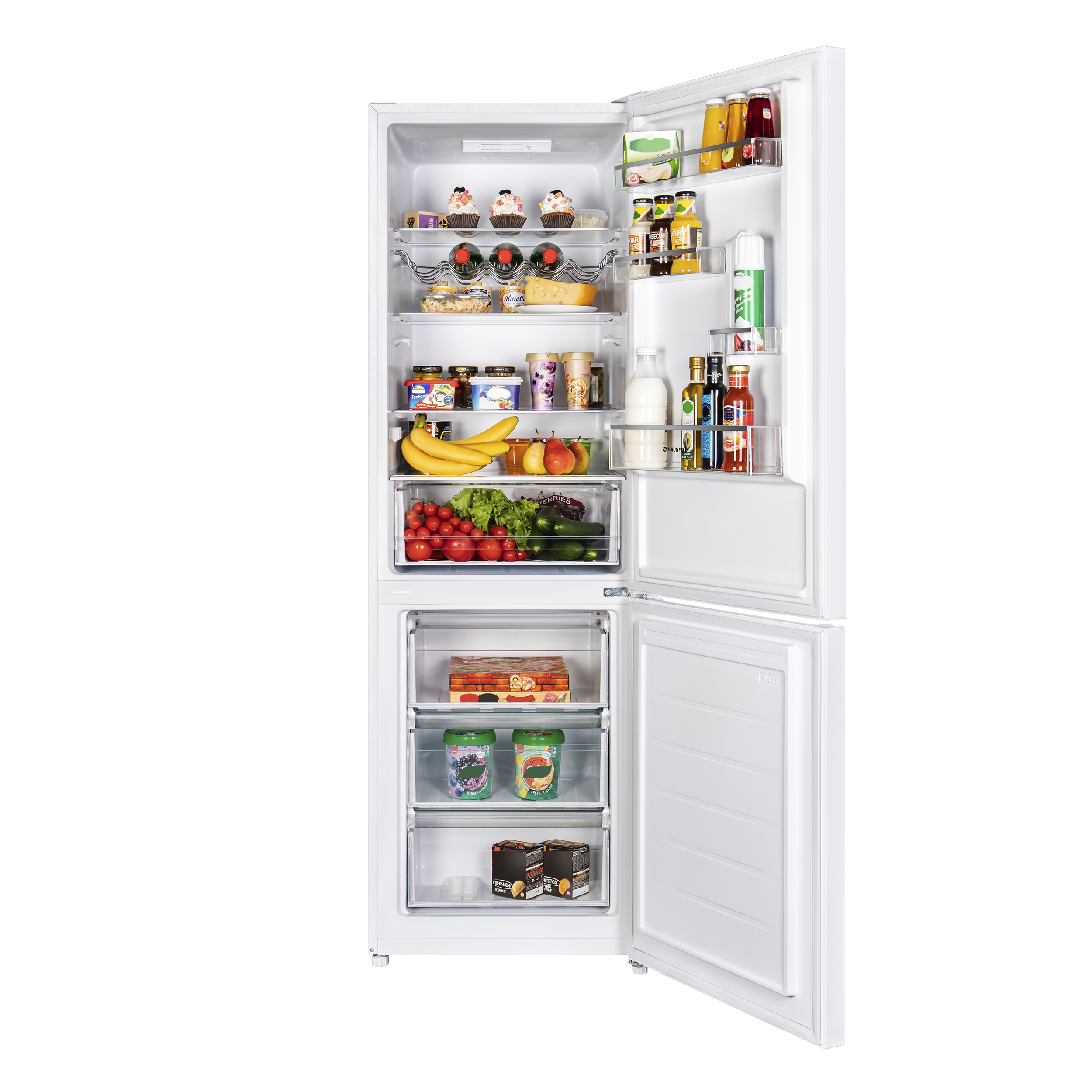 В верхней холодильной камере (213 л) находятся: