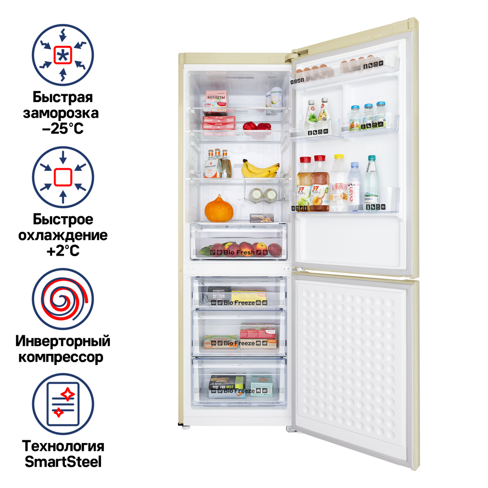 В верхней холодильной камере (232 л) находятся: