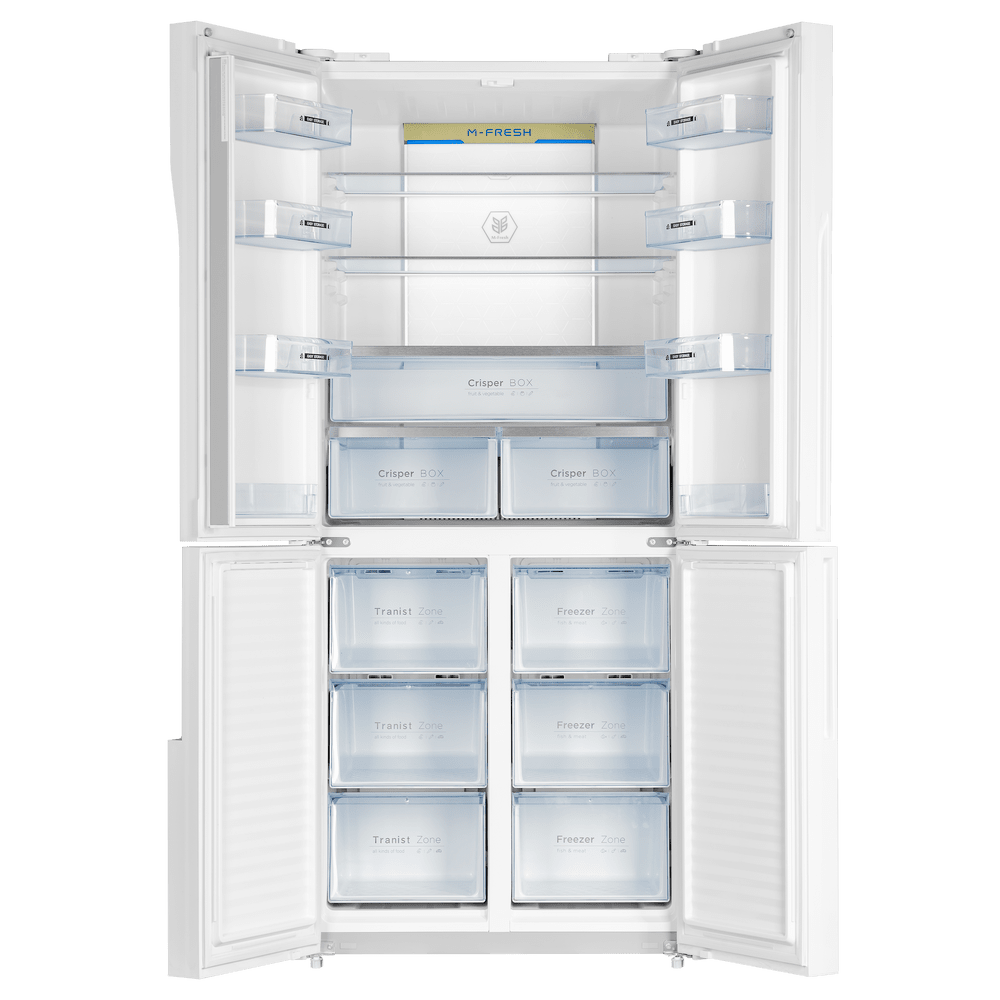 Умный трехкамерный холодильник Cross Door объемом 497 л с инверторным компрессором и компьютерным сенсорным управлением.