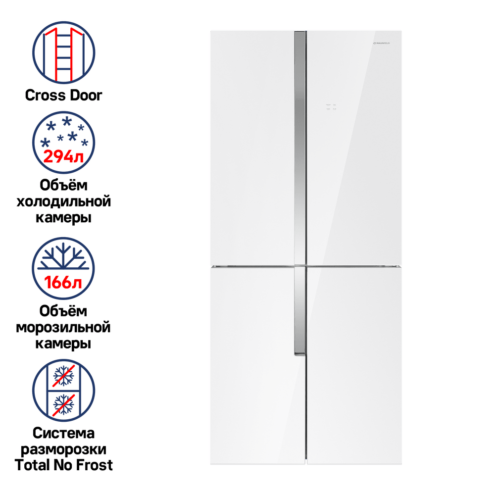 Трехкамерный холодильник Cross Door объемом 460 л с инверторным компрессором и компьютерным сенсорным управлением.