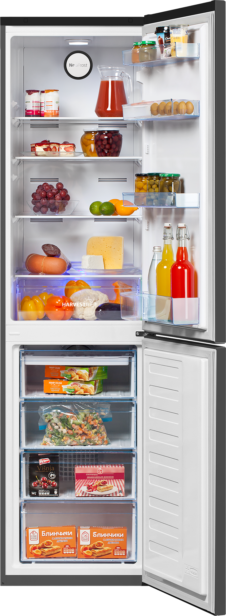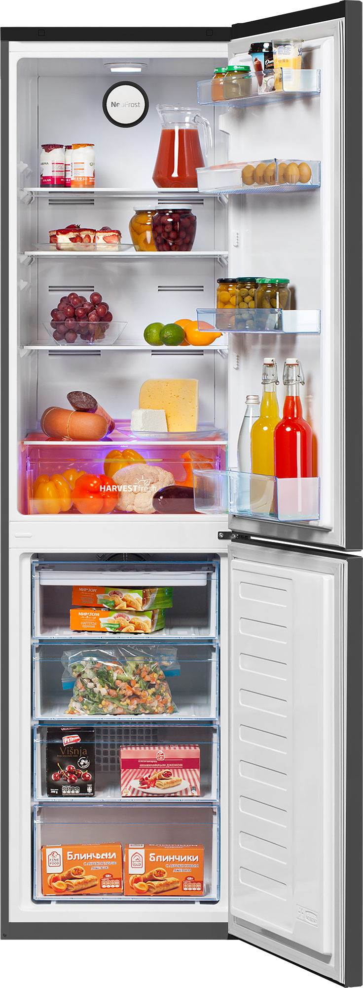 Инновационная технология 3-х цветов от Beko внутри отделения для фруктов и овощей воссоздает природный световой цикл, дольше сохраняя витамины в овощах и фруктах. Бывает сложно увидеть все продукты в холодильнике, особенно в углах и возле задней стенки. LED подсветка обеспечивает превосходный обзор всей камеры и потребляет меньше электроэнергии, чем обычная подсветка. Вам удобнее, чтобы дверь холодильника открывалась в другую сторону? Для холодильников Beko это не проблема. Петли перенавешиваемых дверей можно расположить как с левой, так и с правой стороны холодильника, позволяя выбрать, в какую сторону будут открываться его двери. На время вашего отсутствия вы можете перевести холодильник в режим Отпуск и отключить холодильное отделение. Это позволит сэкономить на счете за электричество и в тоже время не беспокоиться за сохранность продуктов в морозильной камере. С системой NoFrost не нужно регулярно размораживать холодильник.