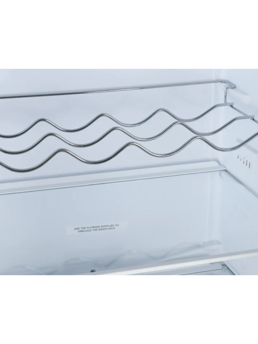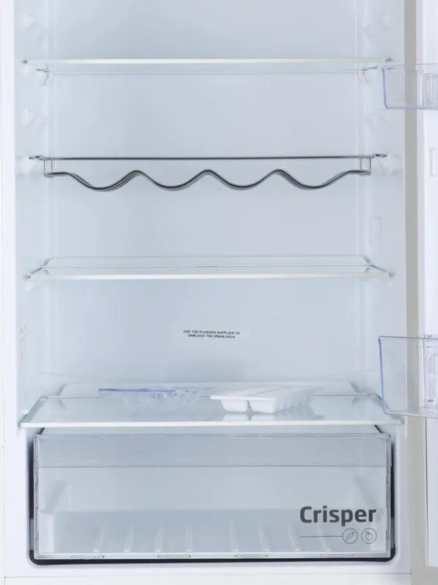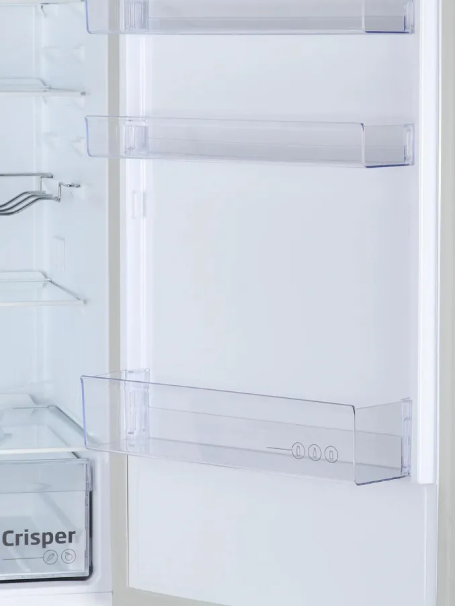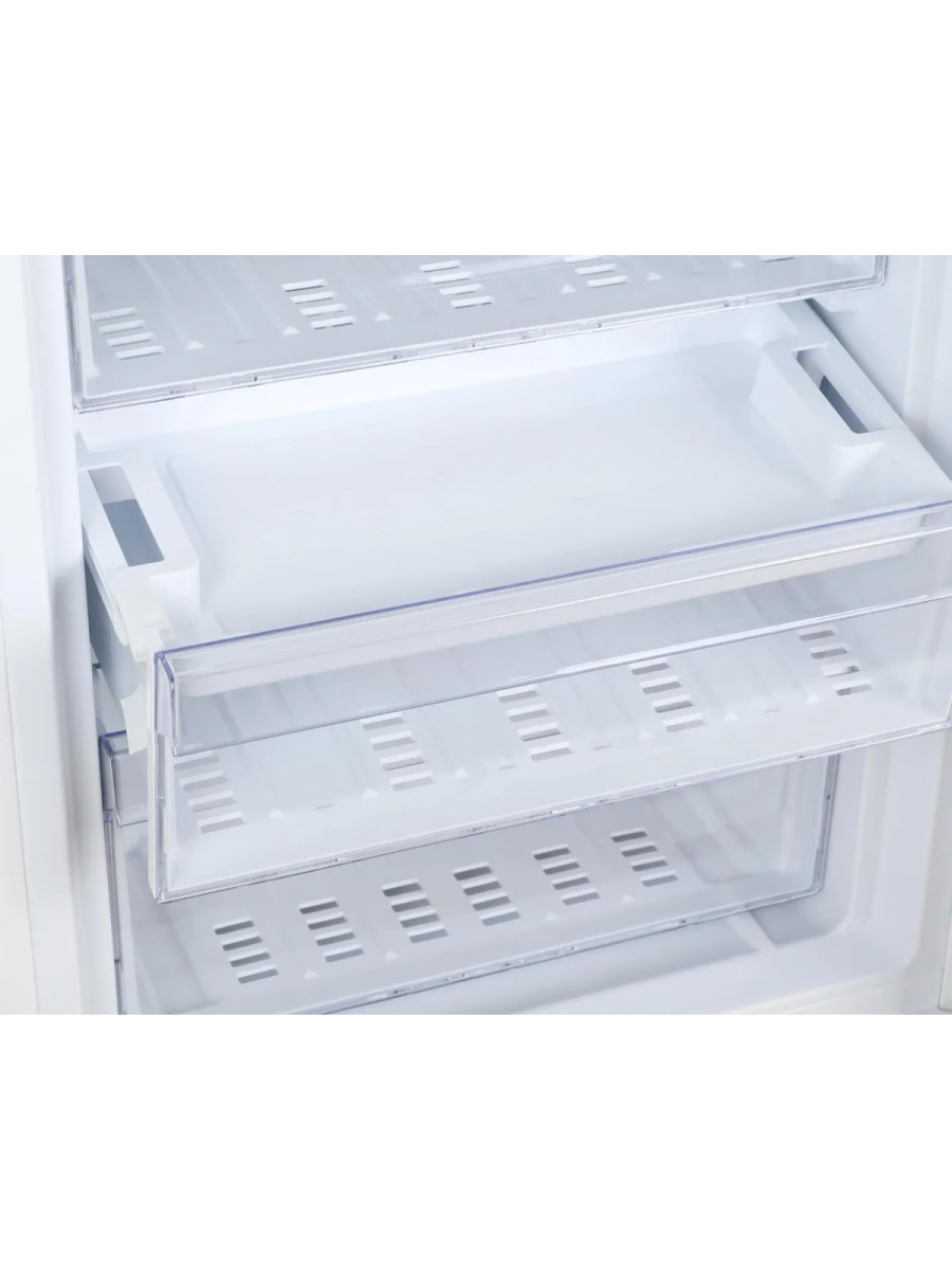 Освещение LED, 3 стеклянные полки (регулир., закален. стекло), подставка для яиц, винная полка, 1 отделение для овощей и фруктов, 4 полноразмерные полки на двери, 3 ящика, лоток для льда