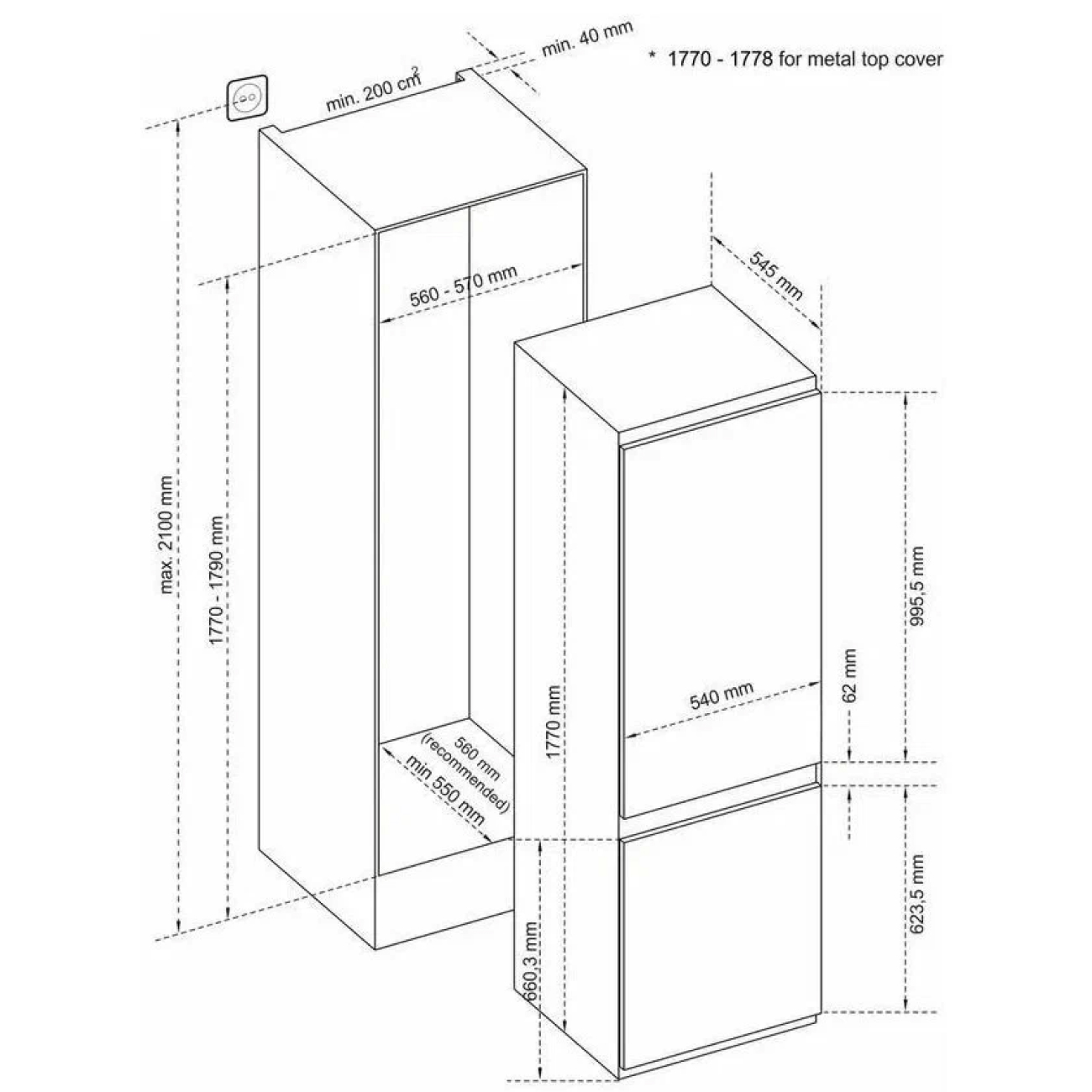 Встраиваемый холодильник c морозильной камерой VESTEL VBI2760, белый