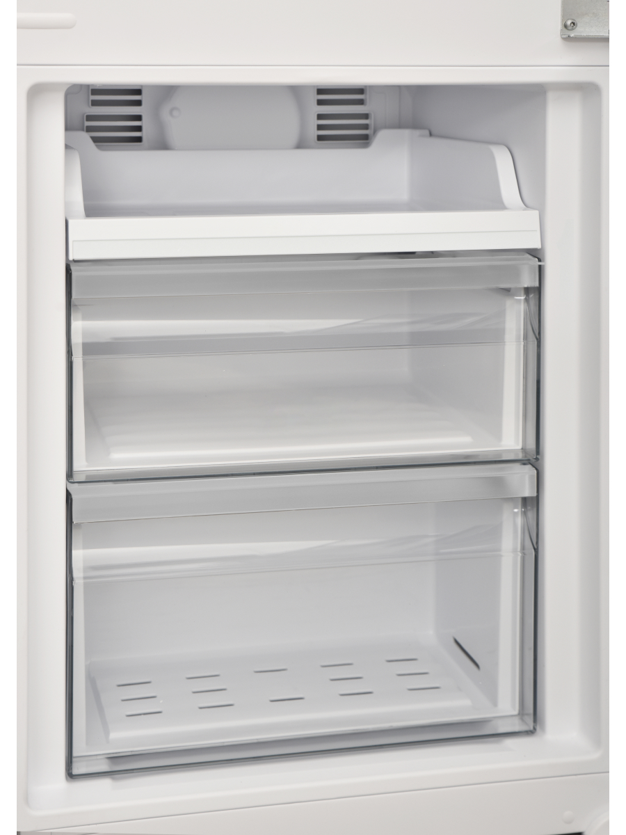 Холодильное отделение на 170 литров включает 4 полки из закалённого стекла, выдвижной ящик и LED-подсветку. Морозильная камера на 63 литра оснащена формочками для льда и обеспечивает мощность замораживания до 3 кг в сутки. Даже при отключении электроэнергии продукты останутся замороженными до 10 часов.