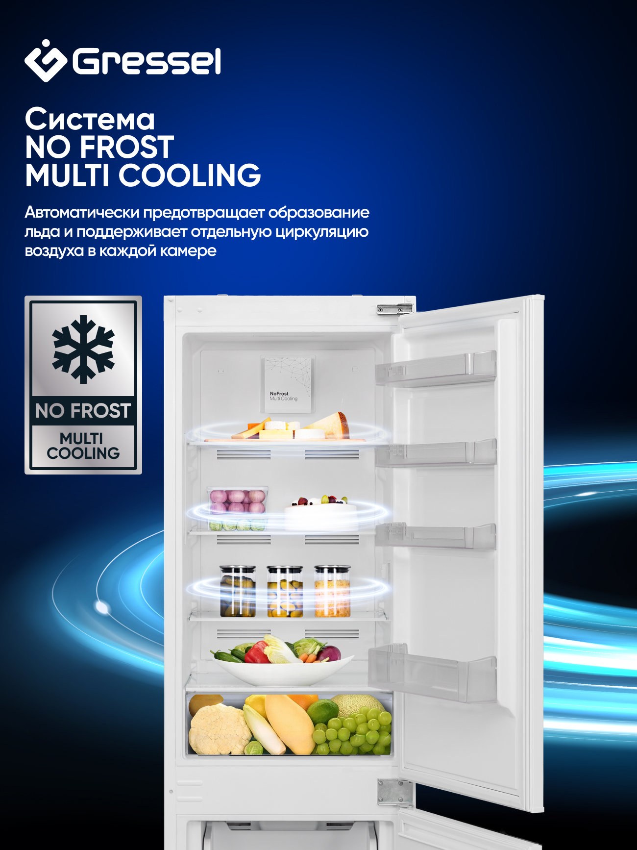 Система No Frost Multi Cooling автоматически предотвращает образование инея и обеспечивает независимую циркуляцию воздуха в холодильной и морозильной камерах, благодаря чему продукты дольше сохраняют свежесть и не требуют разморозки. А если вы только что вернулись из магазина с полными пакетами — активируйте режим интенсивной заморозки, чтобы быстро охладить продукты и сохранить их структуру и вкус.