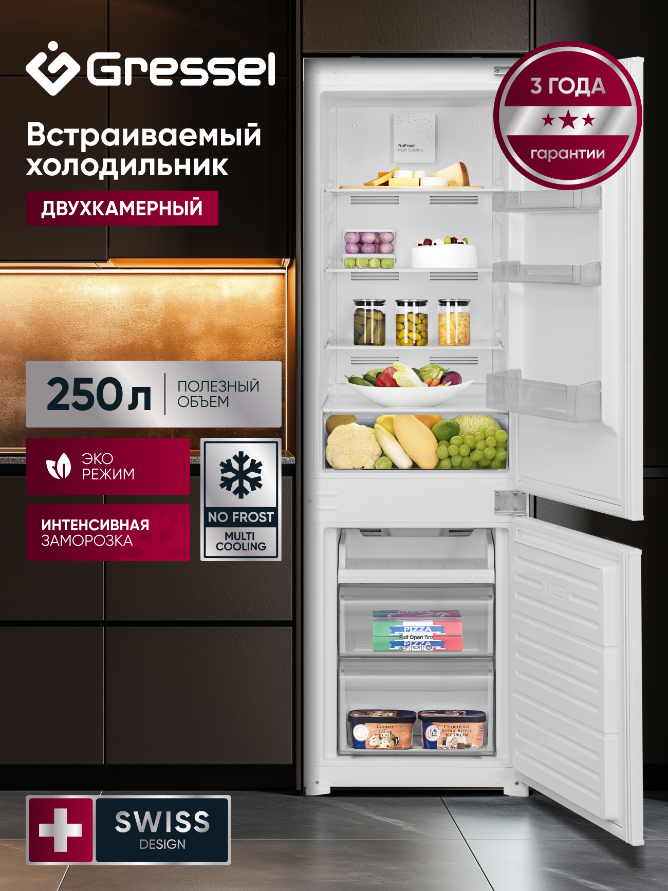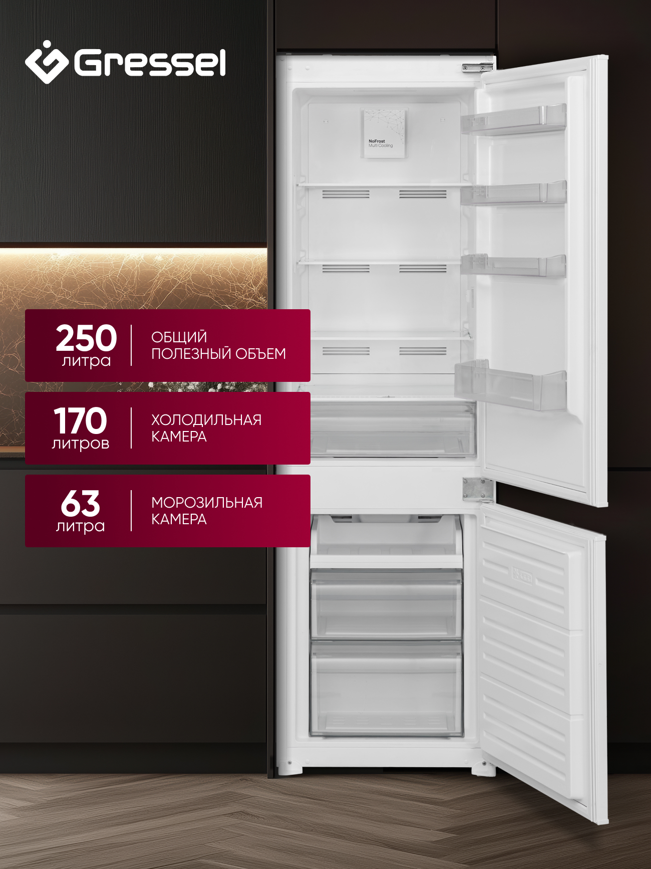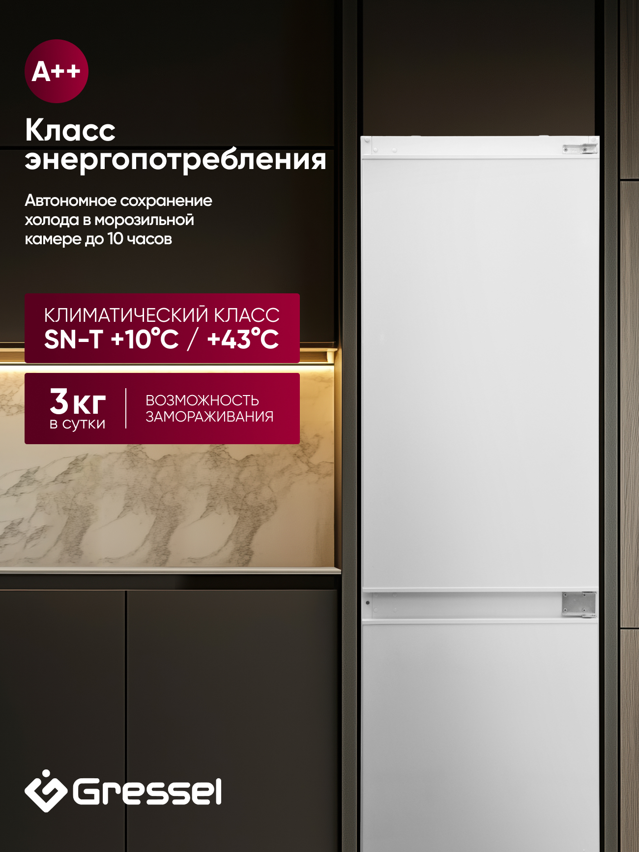 Если вы подбираете надёжный и функциональный холодильник, который легко впишется в кухонный гарнитур, присмотритесь к Gressel UBW36100. Эта встраиваемая двухкамерная модель объёмом 250 литров сочетает современный дизайн и практичные функции для комфортного хранения продуктов каждый день.