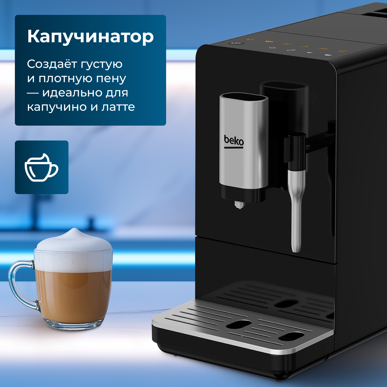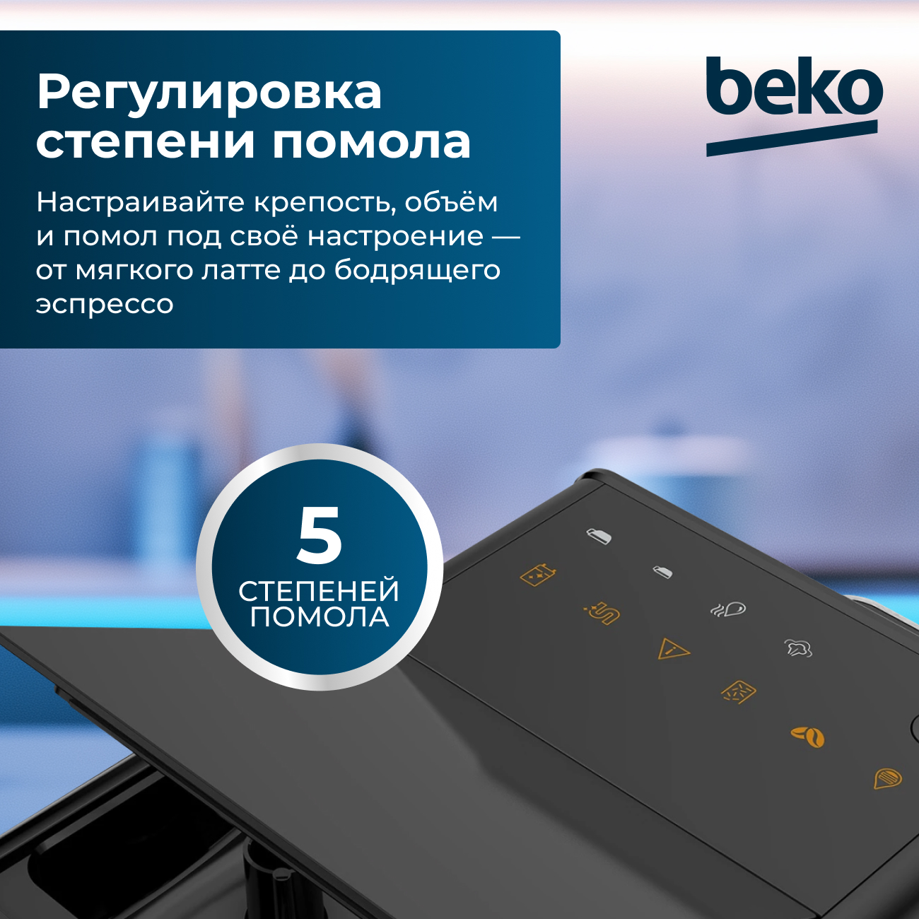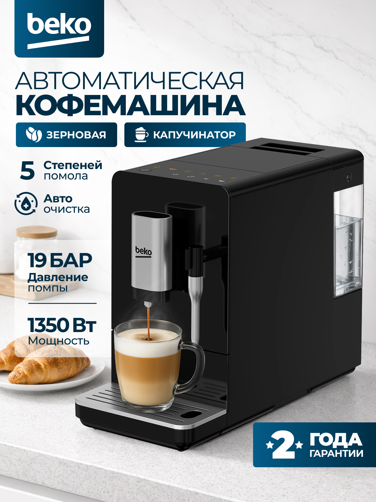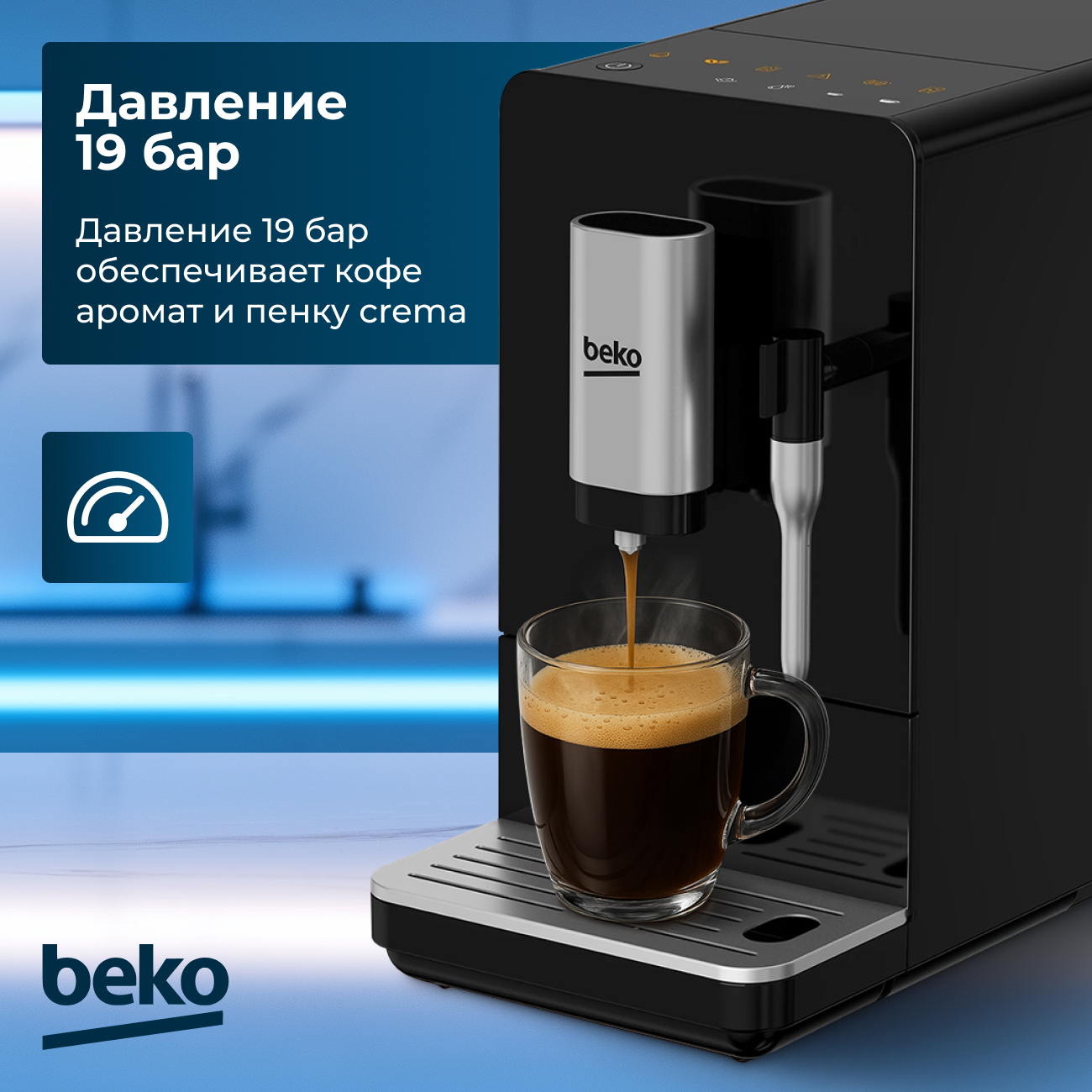 Кофемашина автоматическая зерновая BEKO,19 бар, капучинатор, 5 степеней помола, 1.5 л, черная