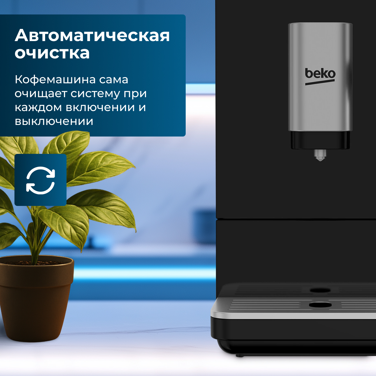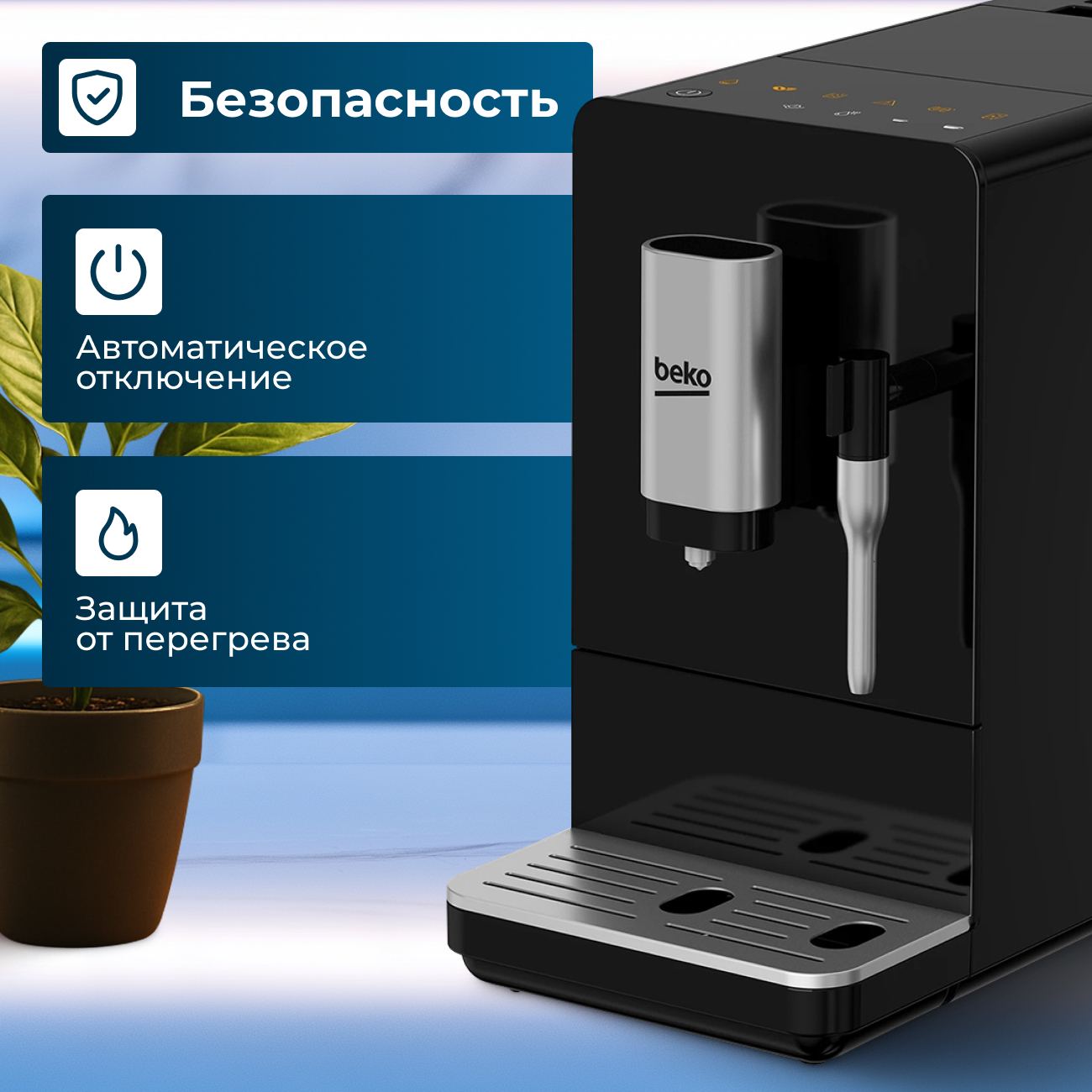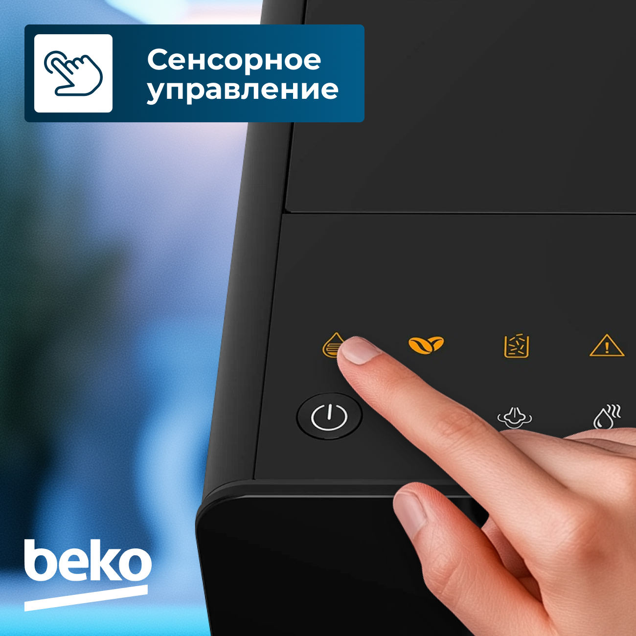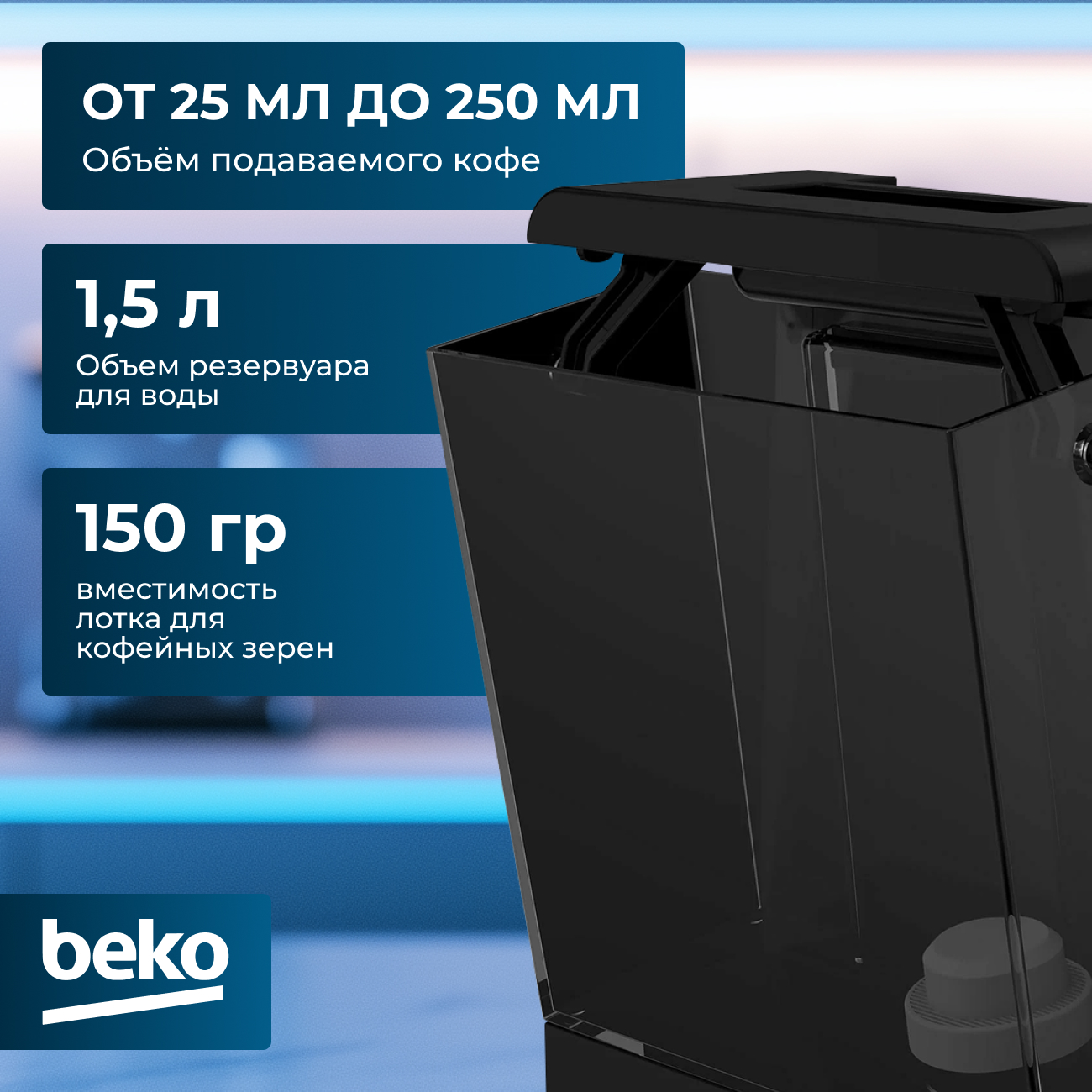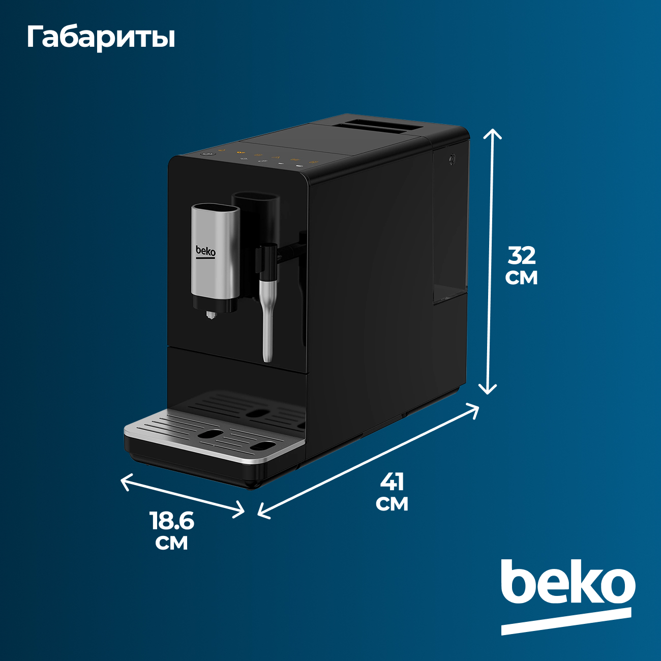 Кофемашина автоматическая зерновая BEKO,19 бар, капучинатор, 5 степеней помола, 1.5 л, черная