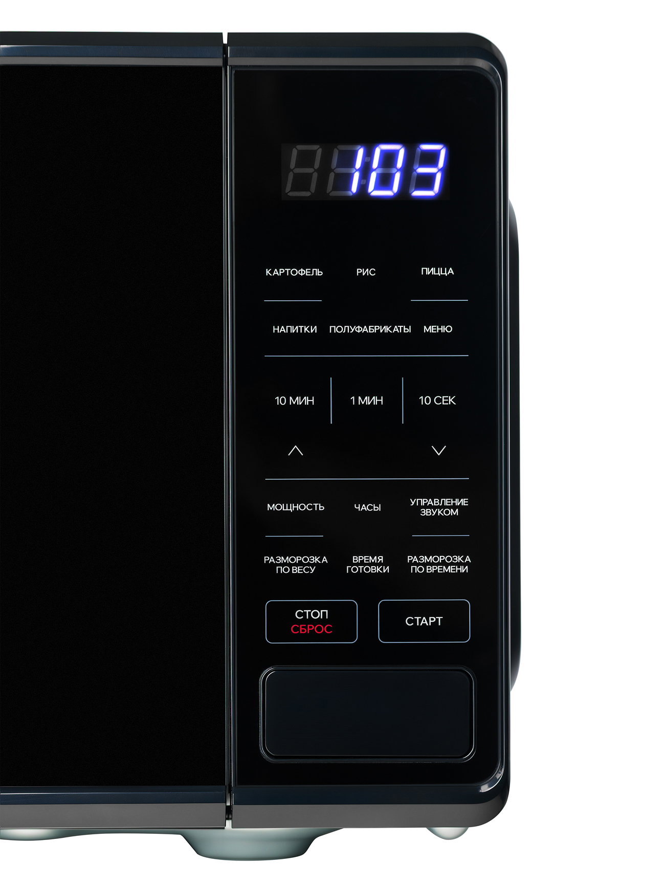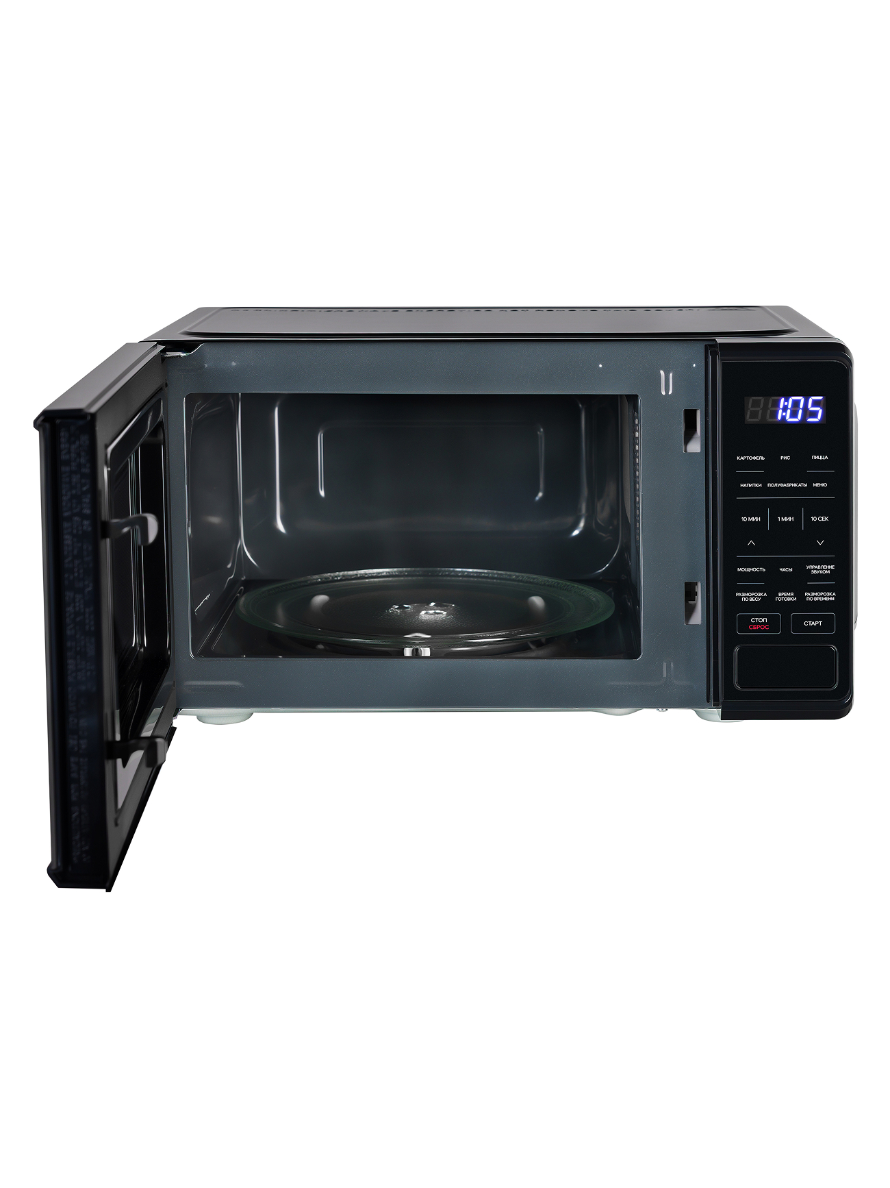 Особенности: Разморозка по весу, разморозка по времени, управление звуком; Потребляемая мощность: 1100 Вт; Внутренний объем: 20 л; Звуковой сигнал: есть; Режим разморозки: есть; Цвет: черный; Автоматическое приготовление: есть; Внутреннее покрытие: эмаль; Внутренняя подсветка: есть; Тип управления: электронное; Дисплей: есть; Часы: есть; Размеры (ШxВxГ): 446х243х323 мм; Таймер: да (30 мин.); Вес: 9,4 кг; Дополнительные программы: Картофель, Рис, Пицца, Напитки, Замороженный ужин; Мощность микроволн: 700 Вт
